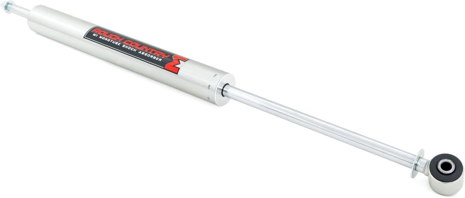Whether you're tackling tough terrain or smooth city streets, Rough Country's Nitrogen-charged M1 Monotube Shock Absorber leads the way, delivering impeccable ride quality and performance mile after mile. Rough Country's Monotube M1 Shocks feature an internal floating piston design that keeps the shock oil and high-pressure nitrogen separate. The result is a lightning-fast reaction with no cavitation – just unbridled vibration damping at each and every obstacle. The M1 Monotube Shock Absorber is more than an upgrade – it's a true performance shock. Each shock features a steel body that is brushed and glavanized boasting a passivation sealing technology that is sure to withstand the elements. The internal 46mm digressive piston offers countless years of durability. The M1 is designed to be mounted body-up for a more interesting look on the vehicle.