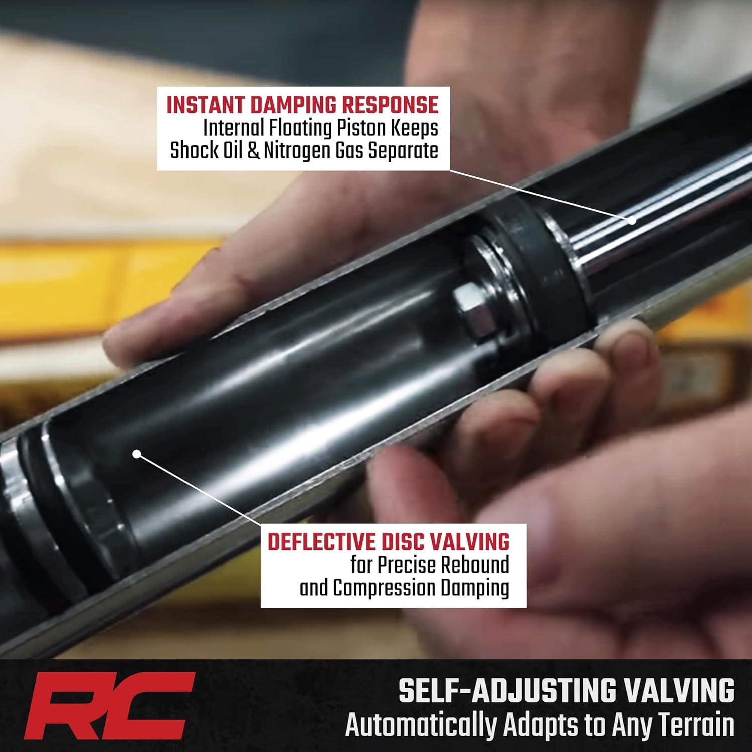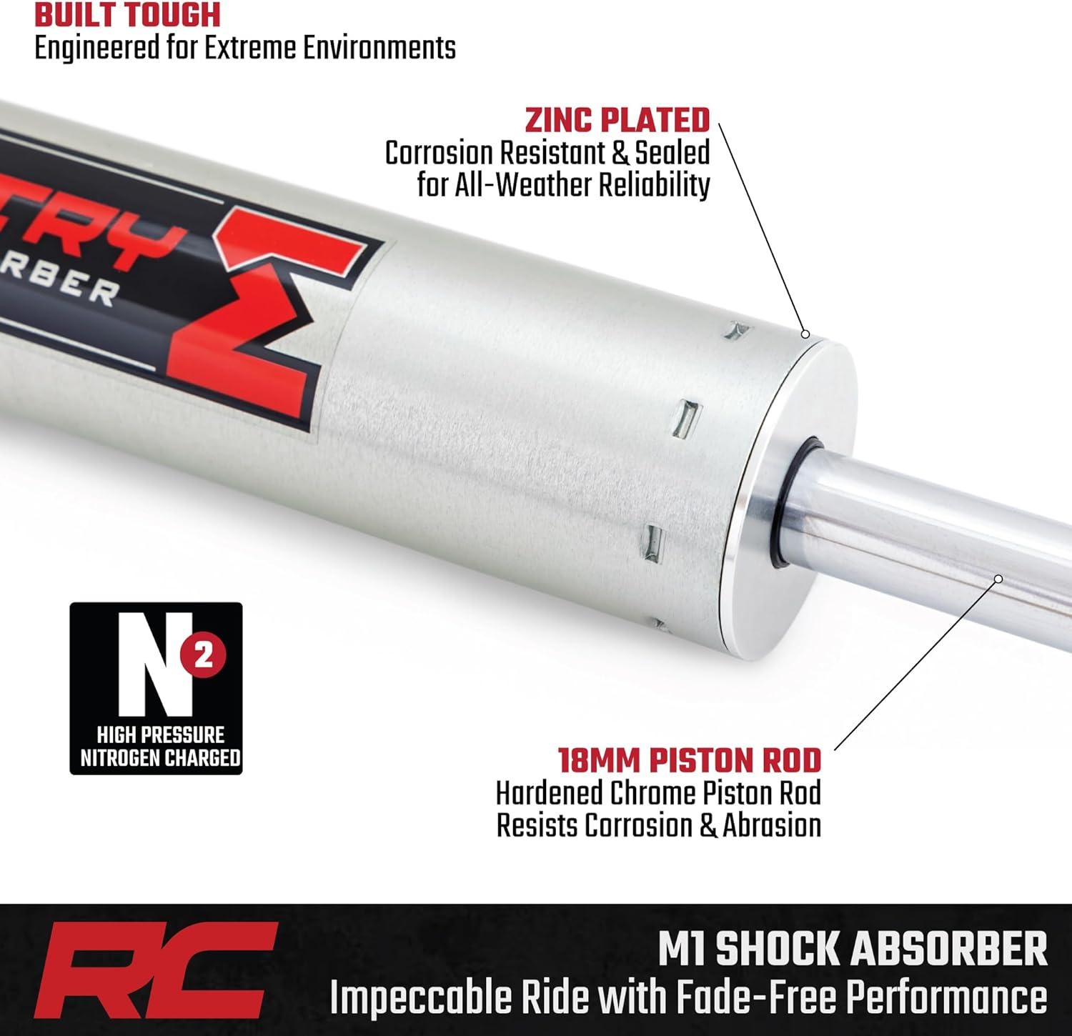 Whether you're tackling tough terrain or smooth city streets, Rough Country's Nitrogen-charged M1 Monotube Shock Absorber leads the way, delivering impeccable ride quality and performance mile after mile. Rough Country's Monotube M1 Shocks feature an internal floating piston design that keeps the shock oil and high-pressure nitrogen separate. The result is a lightning-fast reaction with no cavitation – just unbridled vibration damping at each and every obstacle.