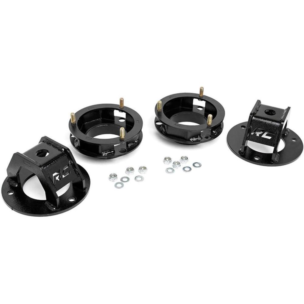 Breathe new life into your 94-02 Ram 2500 with Rough Country's 1.5″ Leveling kit. This easy to install leveling kit helps reclaim lost height from sagging factory springs, while improving the overall look of the vehicle. Stock 2500s sit higher in the rear than the front, and this unsightly nose-down look is usually corrected with our 2.5″ leveling kit that raises the front to be equal height with the rear. Many 2500s in the 94-02 year range, however, have seen their fair share of farm work and towing in the 20+ years of its life, and as a result the rear-end springs usually sag a bit. When the stock rear springs sag in this way, 2.5″ of front lift can become too much and cause the front-end to sit higher than the rear. Rough Country's 1.5″ lift is the sweet spot for bringing a level look to any well-used Dodge 2500. Featuring a set of front coil spacers and factory shock-relocation brackets, this kit offers enough clearance to run up to 33×12.50 tires. Regain even more ride quality and upgrade to Rough Country's rear, Nitrogen-charged N2.0 shock absorbers for an impressive blend of off-road vibration dampening and smooth highway ride! Includes Rough Country's Lifetime Replacement Warranty.