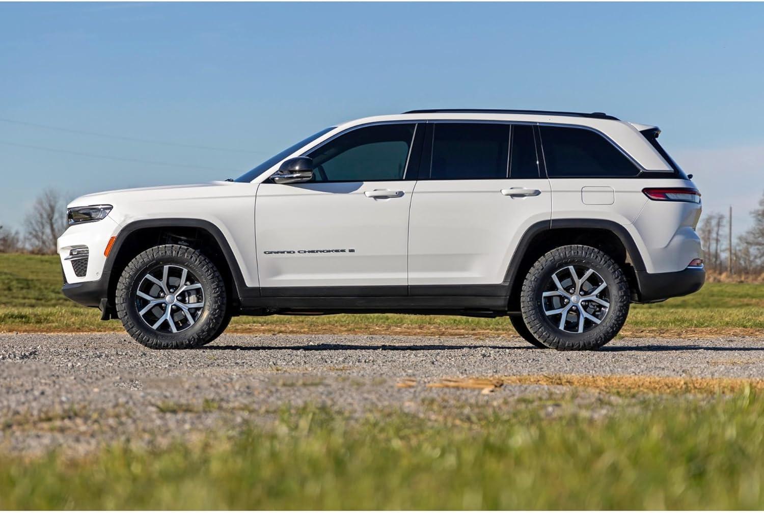 Explore New Heights. Give your Grand Cherokee increased ride height and aggressive good looks with Rough Country’s 1-inch Lift Kit. This easy-to-install kit levels your vehicle from front to rear, giving you increased ground clearance to run larger tires while eliminating the nose-down factory look for a commanding presence. Innovative Design and Construction. When it comes to leveling your WL, a small lift can make a huge difference! By lifting the vehicle's front end to match the height of the rear, you get an instant transformation that won't sacrifice the factory ride quality. Each kit features upper strut spacers, laser-cut for a precise fit, and powder-coated black to resist the elements. Installation and Warranty. This easy-to-install kit features a bolt-on installation procedure with only light trimming required to install, making it easy to improve the look of your vehicle even with common tools in a home garage! Rough Country's 1″ Suspension Lift Kit is backed with a lifetime replacement warranty towards manufacturer defects. As such, the product is protected from structural and workmanship damage after the date of purchase. With our industry-leading warranty give yourself peace of mind when using Rough Country's Suspension products!