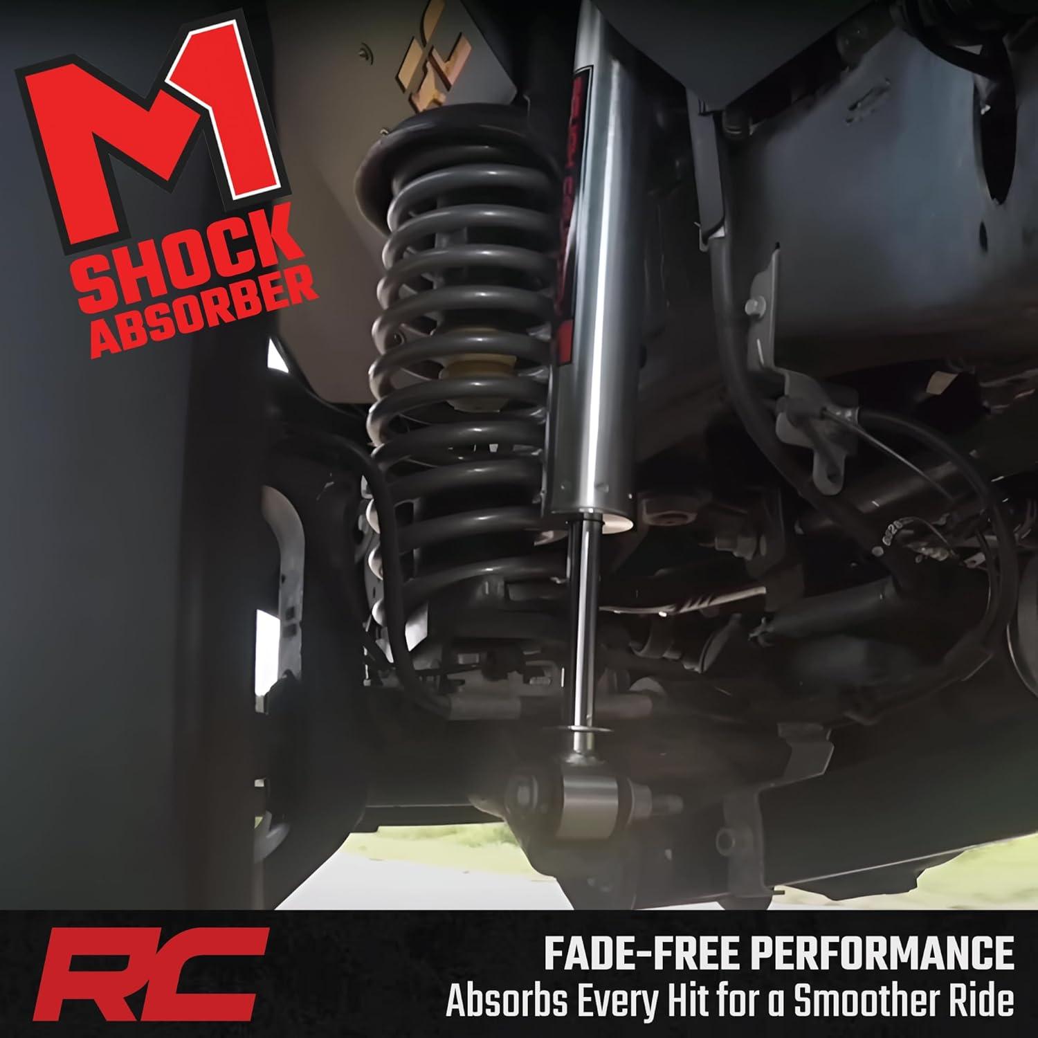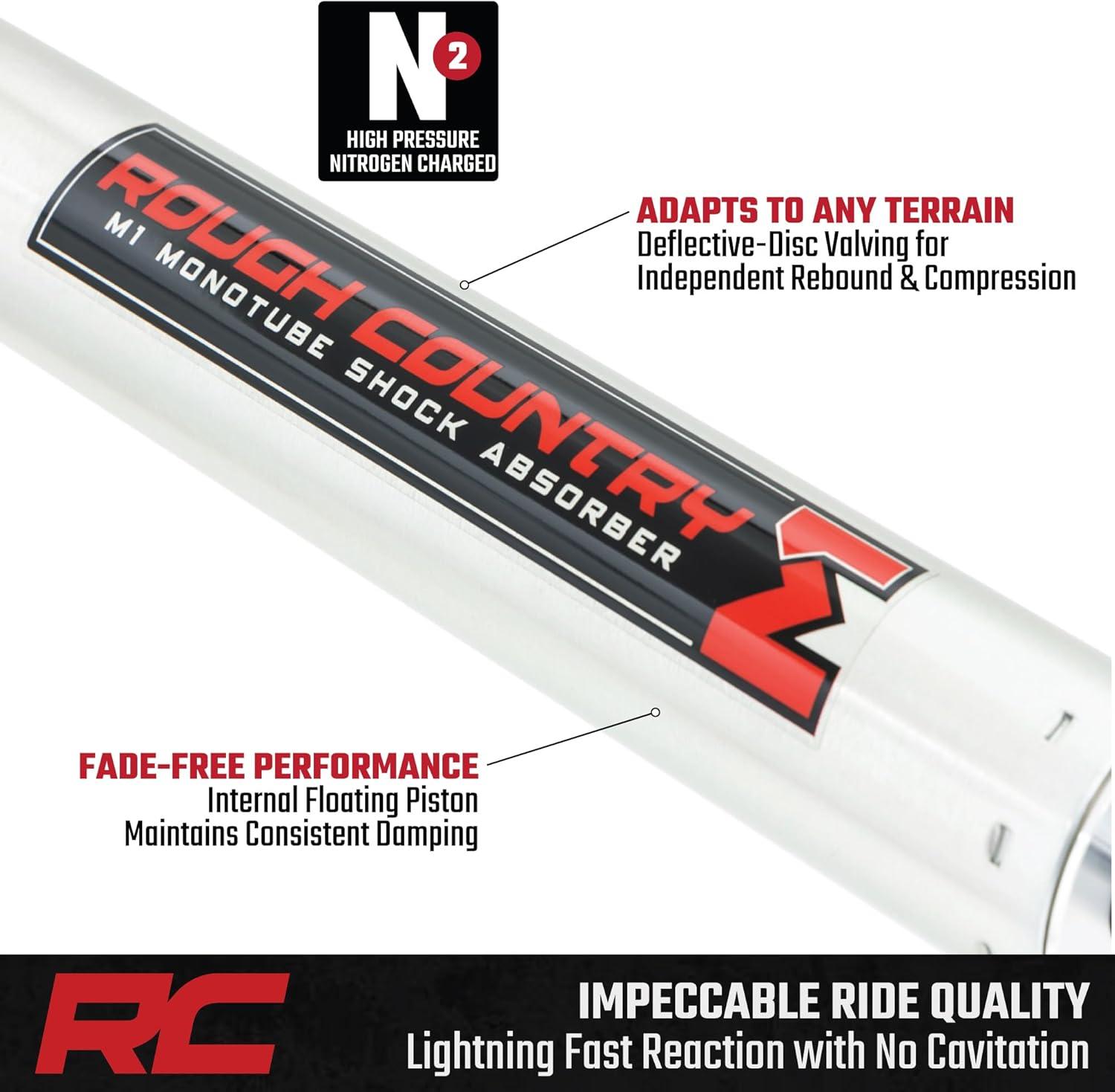 Whether you're tackling tough terrain or smooth city streets, Rough Country's Nitrogen-charged M1 Monotube Shock Absorber leads the way, delivering impeccable ride quality and performance mile after mile. Rough Country's Monotube M1 Shocks feature an internal floating piston design that keeps the shock oil and high-pressure nitrogen separate. The result is a lightning-fast reaction with no cavitation – just unbridled vibration damping at each and every obstacle.