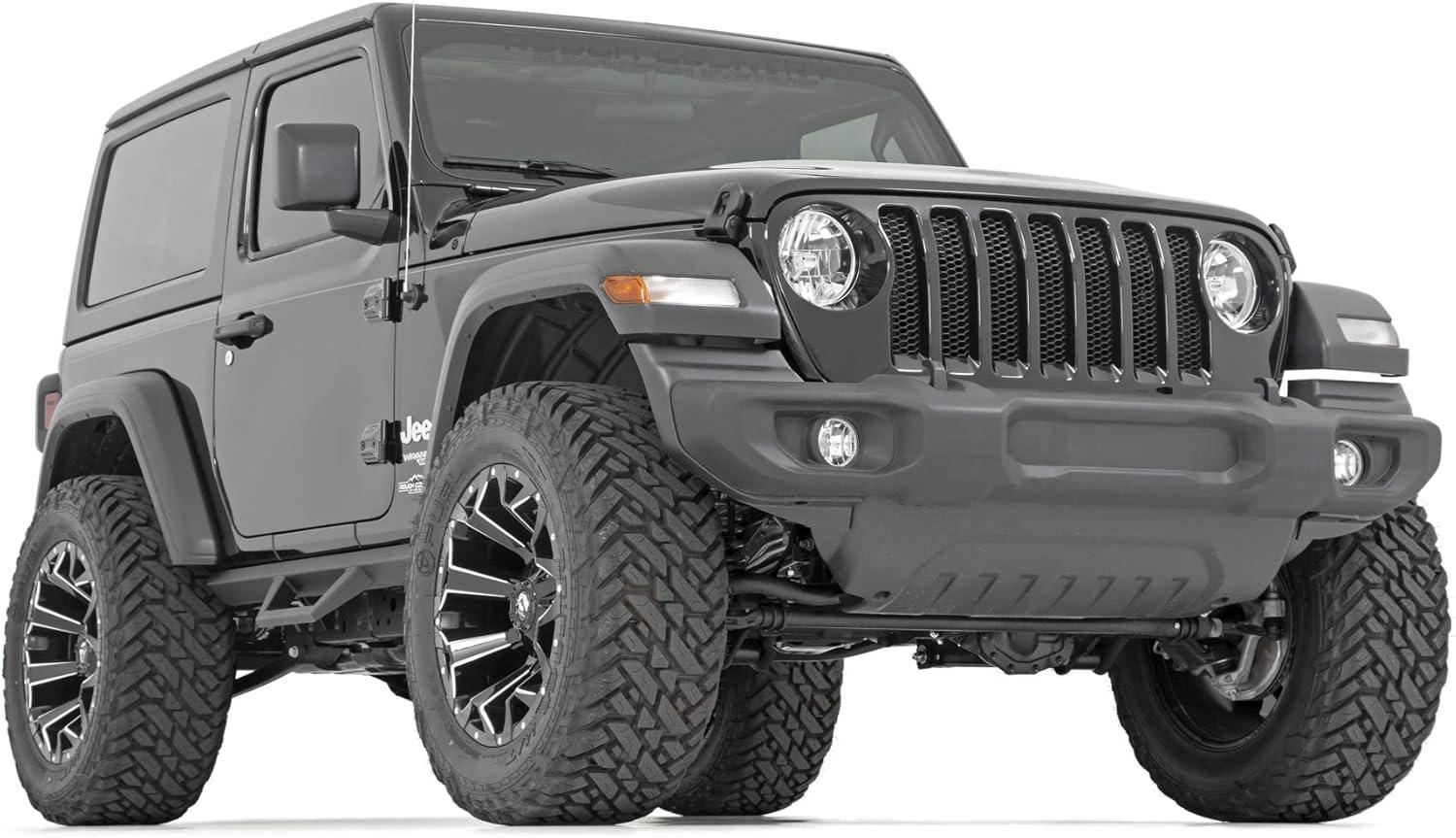 Easy bolt-on installation: No need to break out your toolbox and spend days in the garage. Our lift kit is designed for a hassle-free, bolt-on installation, so you can get back to hitting the trails in no time. Note: Fits 2-door models ONLY. Due to variances in motor weight, this kit does NOT fit models equipped with a 3.0L EcoDiesel V6 motor. Due to variances in coil spring rate this kit NOT fit Rubicon models. 35″ tires will clear, but rubbing may occur with extreme articulation. If planning on running 35″ tires on factory wheels, double-check clearance between the front tire, lower control arm, and sway-bar links.