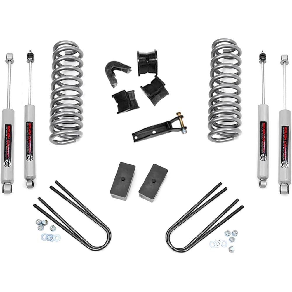 Premium N3 Shock Absorbers: This kit features Rough Country's nitrogen-charged N3 shocks, precision-tuned with a 10-stage variable valving system, 18mm piston rods, and fast-cooling 54mm shock bodies for enhanced off-road handling and smooth highway ride quality.
