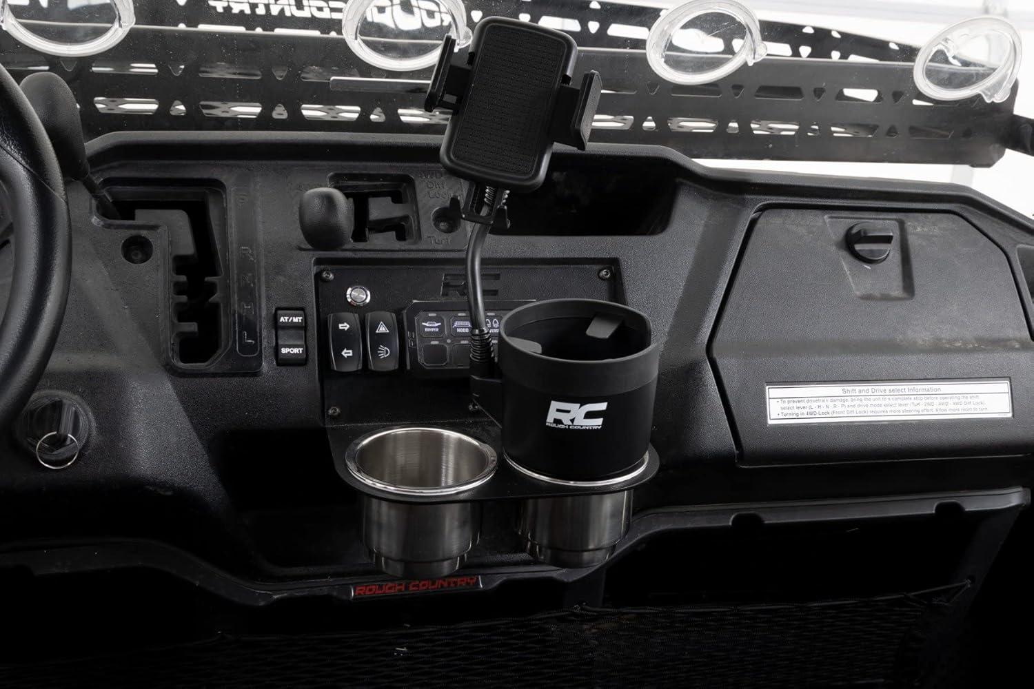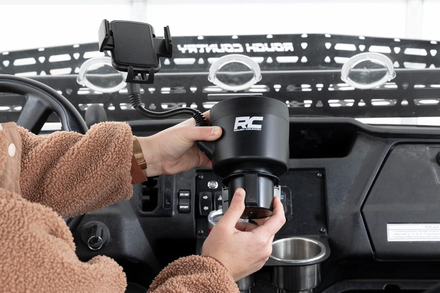 Introducing Rough Country's 2-in-1 Expanding Cup and Phone Holder! This revolutionary product is designed to keep your cell phone secure no matter where you go. This universal 360° rotation phone mount offers rubber tabs for a secure fit and a sturdy, flexible phone extension, so your device always stays put, even on rocky trails. The retractable base ensures a firm fit in any cup holder, from 2.69in – 3.9in diameter. With Rough Country's 2-in-1 Expanding Cup and Phone Holder, your phone will stay where it belongs!