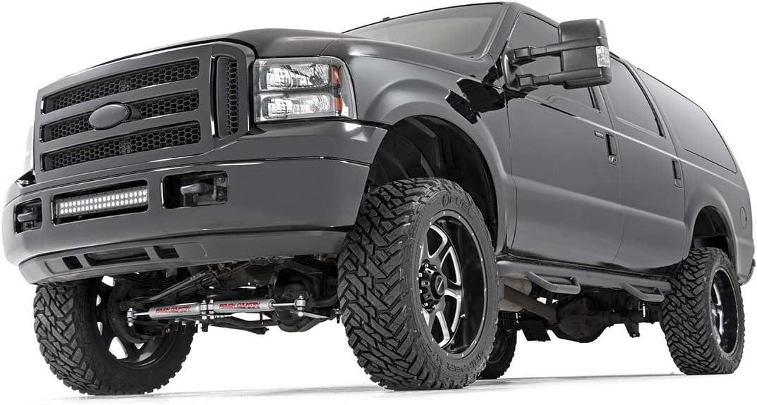 Level your 00-05 Excursion from front to rear quickly and easily with Rough Country�s 2″ Leveling kit! This awesome upgrade features a front mini leaf spring lift, offering enough additional clearance to run up to 33×12.50 tires. Give your Excursion a killer new profile! From the factory, the Excursion has a front rake, leaving the vehicle with a nose-down look. This simple kit raises the front to be equal height with the rear, immediately giving your SUV a commanding presence and killer good looks. This easy to install leveling kit features a 100% bolt-on installation process, with no cutting or drilling required. This kit can be installed with common tools in a home garage! Best of all, this kit features Rough Country�s lifetime replacement warranty!