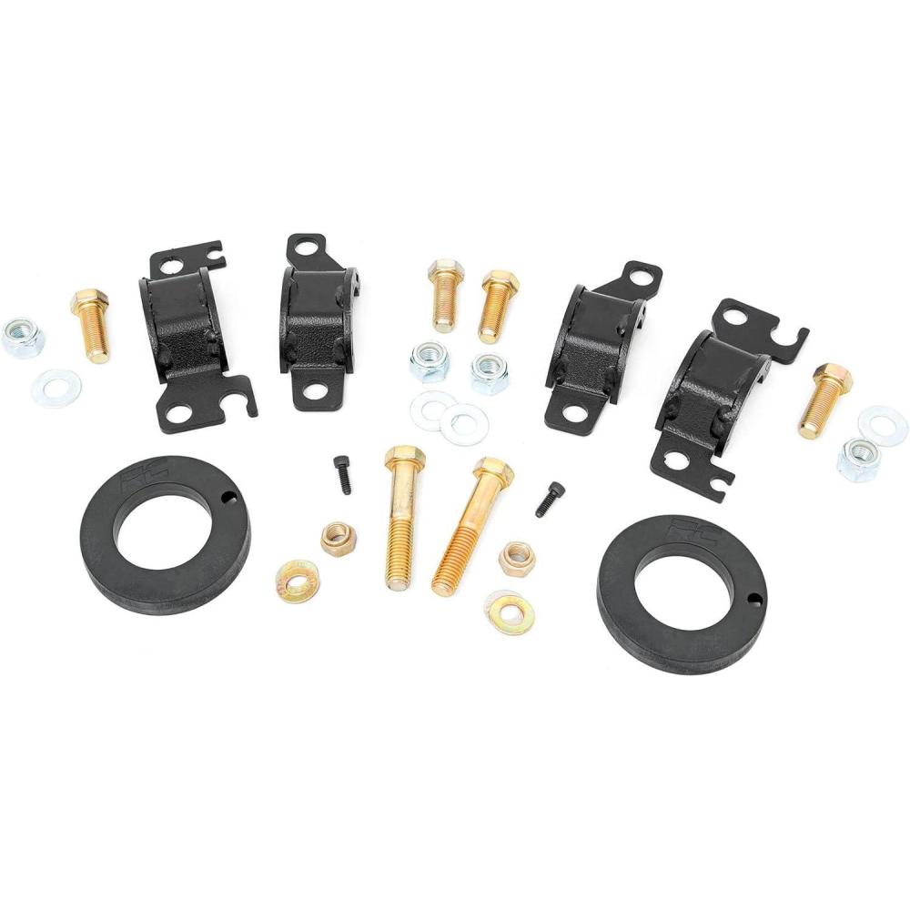 Give your KL Cherokee increased ground clearance and an aggressive look worthy of the Jeep name with Rough Country's 2″ Suspension Lift Kit! This 2″ kit lifts and levels your vehicle for an improved look and enough ride height to run up to 32″ tires with some trimming. Each kit features a set of front and rear spacers made of a durable steel construction. This all-inclusive kit features everything you need to tackle the trails – including a brake line and ABS relocation system that is built directly into the strut spacer, allowing you to retain your factory lines while being kept safely tucked away. This innovative design connects directly into the bracket welded onto the factory strut, ensuring the strut can't pivot to an undesirable angle. Rough Country's 2″ KL Lift Kit features a bolt-on installation process making it easy to improve the look and performance of your Cherokee. Best of all, each kit includes a Lifetime Replacement! Fitment Notes: This product does NOT fit 2019+ Trailhawk models, 2022 Jeep Cherokee X models, models with aftermarket struts, or models with Active Drive Lock. For AD1 models, it accommodates up to a 245/70R17 tire, while AD2/Trailhawk models can use up to a 255/70R17 tire.