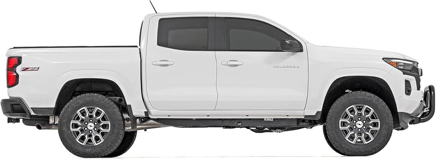 Innovative Design and Construction. When it comes to lifting your Colorado, a small lift can make a huge difference! Rough Country’s 2-inch Kit features an upper-strut and pre-load spacer design which is designed to improve CV boot clearance compared to bottom mount spacers. This kit also includes rear lift blocks and u-bolts to provide lift height from front to rear. Once installed, this kit gives your truck plenty of ride height for up to larger tires while offering a clean, level look from front to rear.