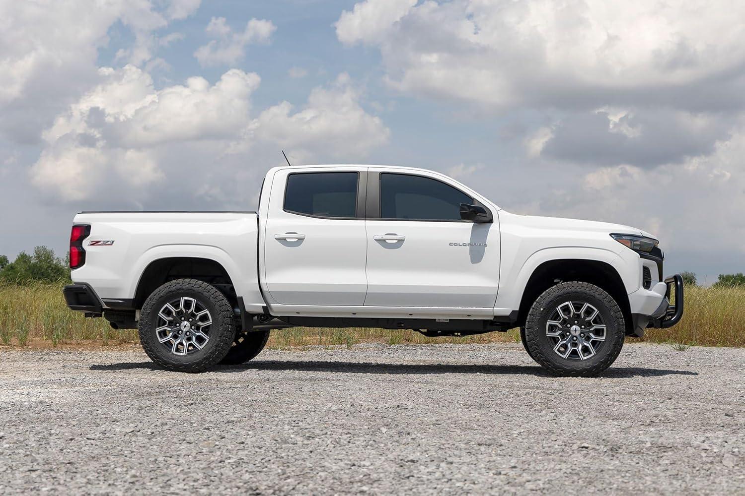 Explore New Heights. Give your Chevy Colorado or GMC Canyon increased ride height and aggressive good looks with Rough Country’s 2-inch Lift Kit. This easy-to-install kit levels your vehicle from front to rear, giving you increased ground clearance to run larger tires while eliminating the nose-down factory look for a commanding presence.