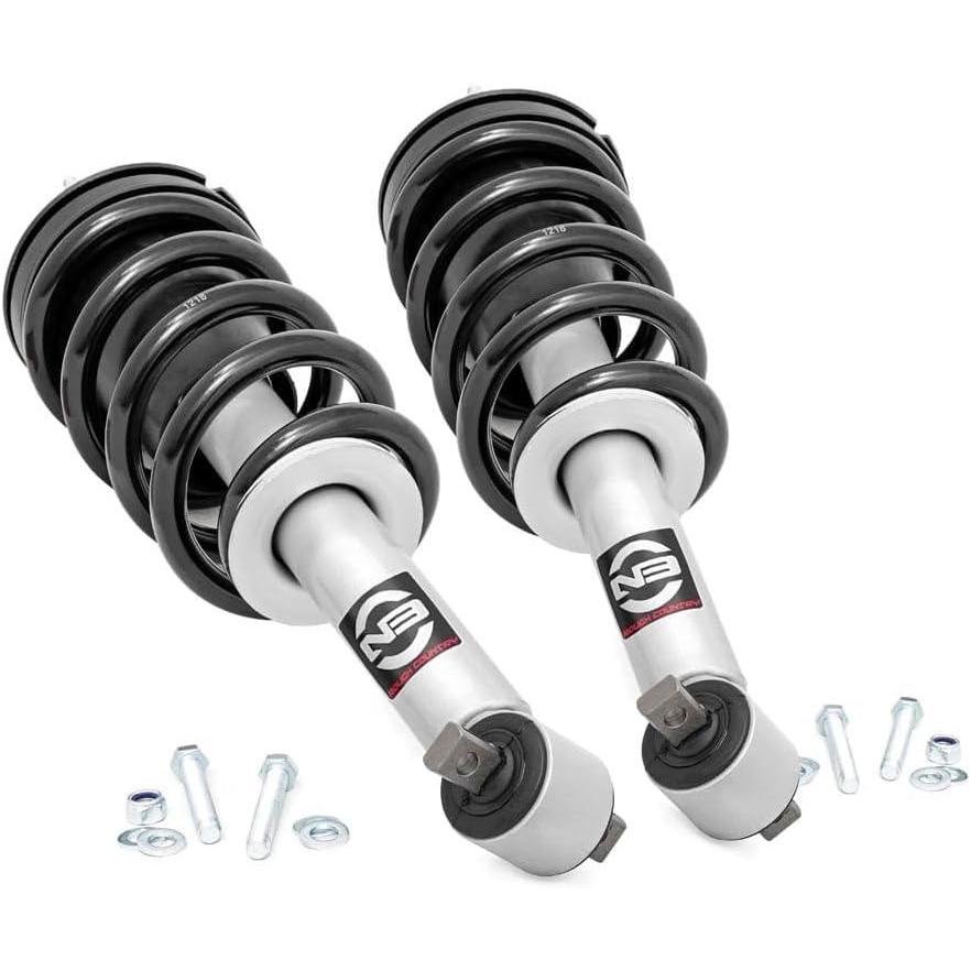 Give your truck the lift it deserves with Rough Country N3 Leveling Struts — engineered to level your front end, enhance off-road capability, and deliver a smooth, confident ride on any terrain. This high-performance upgrade eliminates the factory rake for a clean, aggressive stance while increasing ground clearance, allowing room for larger tires and better approach angles. Whether you're hitting the trails or cruising city streets, these struts offer improved handling, stability, and style all in one rugged package.