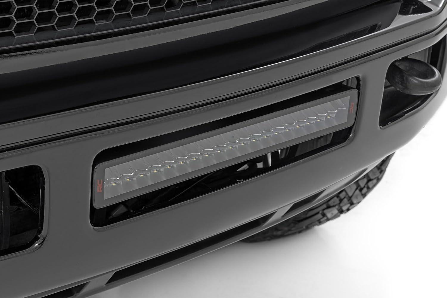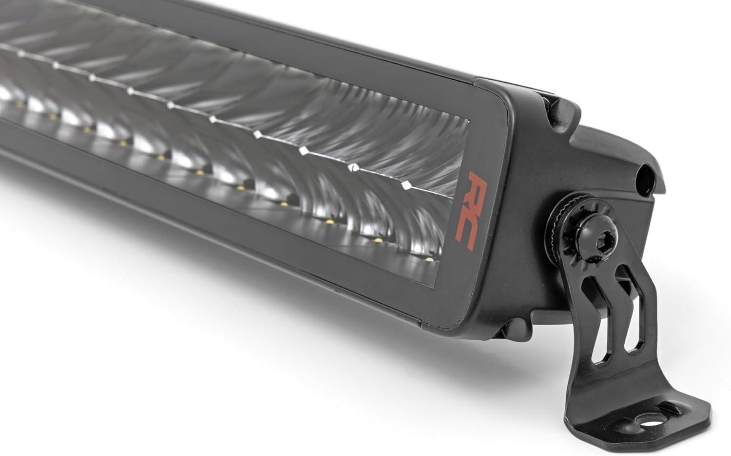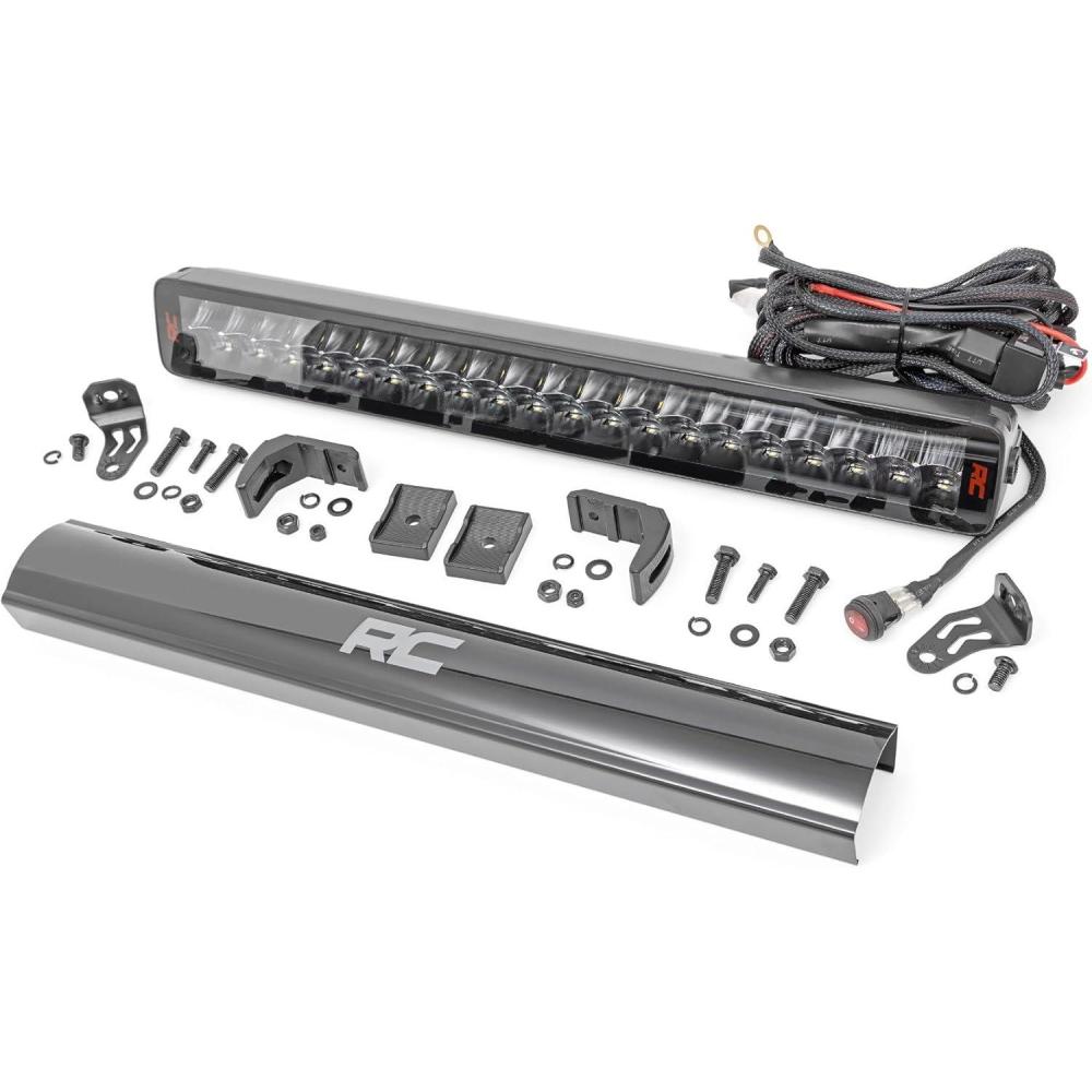 Installation and Warranty. Rough Country's Spectrum 20-inch Dual Row Light Bar is designed for easy installation, allowing you to get back on the road in no time. It comes with snap-on covers, base mounts, end mounts with hardware, wiring harness, and an on/off switch so you can have it on your rig in no time. Plus, it includes a three-year warranty, so we've got your back when you hit those rough roads out there!