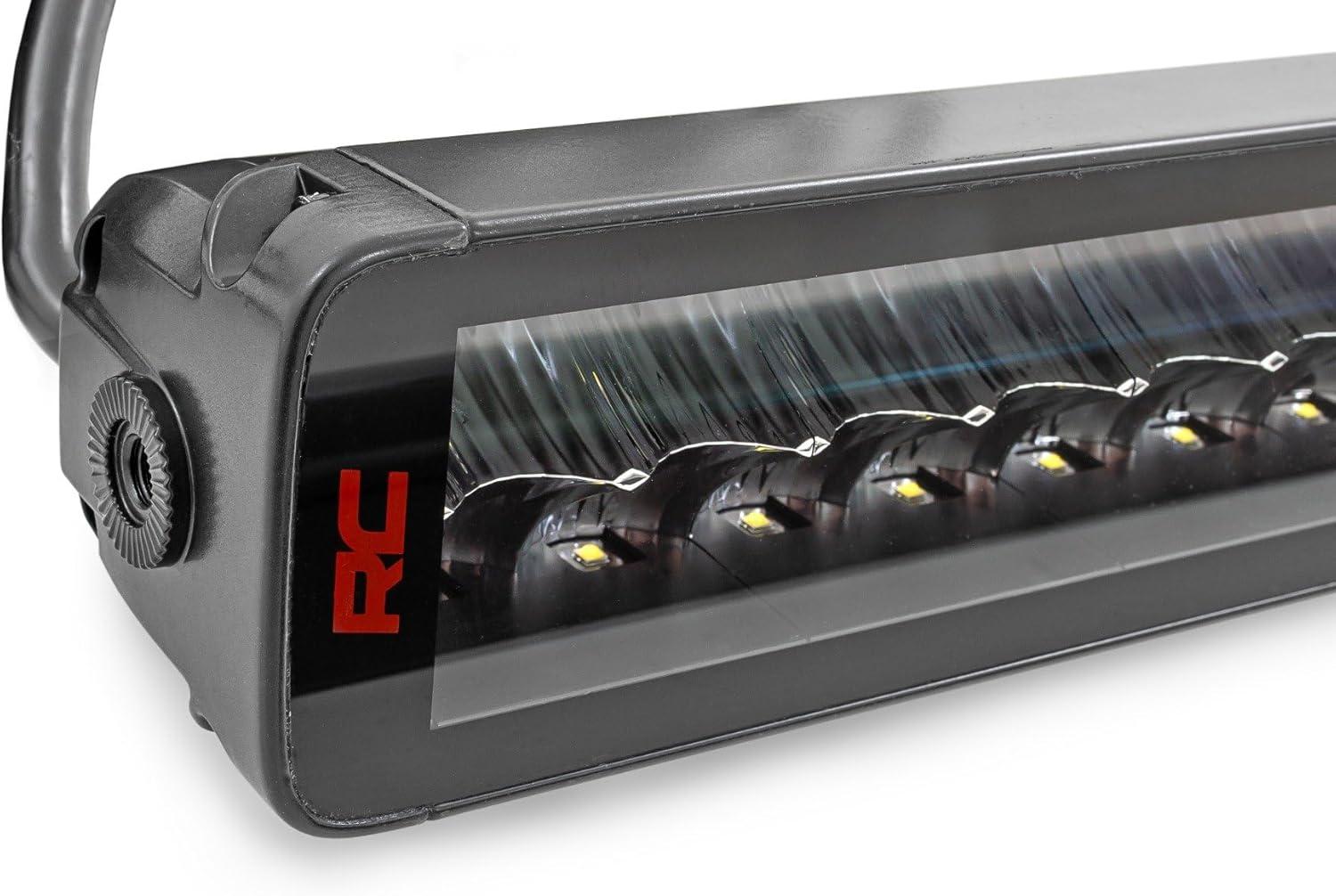 This Rough Country 20-Inch Spectrum Series LED Light Bar features a spot/flood combo beam and measures 22.79″ L x 2.64″ D x 2.75″ H. It delivers bright 6000K illumination, operates on 10–30V DC (12V optimized), and draws 16.6 amps. Built with a rugged aluminum housing and impact-resistant polycarbonate lens, it includes an 18 Ft. wiring harness for straightforward installation.