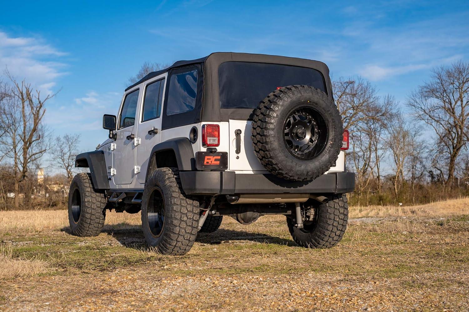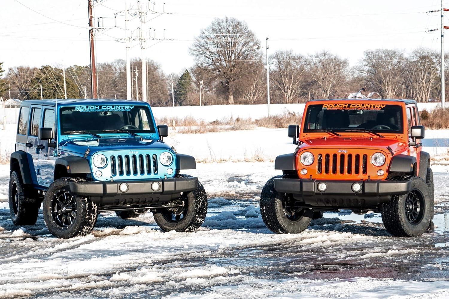 Easy, Bolt-On Installation: Designed for straightforward installation, this all-inclusive kit requires no cutting or complex modifications, getting you back on the trail faster. Backed by Rough Country's Limited Lifetime Replacement Guarantee, this lift kit is built to withstand the harshest environments and keep you adventuring longer. Upgrade your Jeep JK with Rough Country's 3.25″ Series Lift Kit and experience the perfect blend of rugged performance, customizable comfort, and refined style. Fitment Notes: Does NOT fit 2-door models. If planning on running 35″ tires on factory wheels, double check clearance between the front tire, lower control arm and sway-bar links. 2012-2018 models require exhaust modifications to clear the front driveshaft RC SKU: 1030.