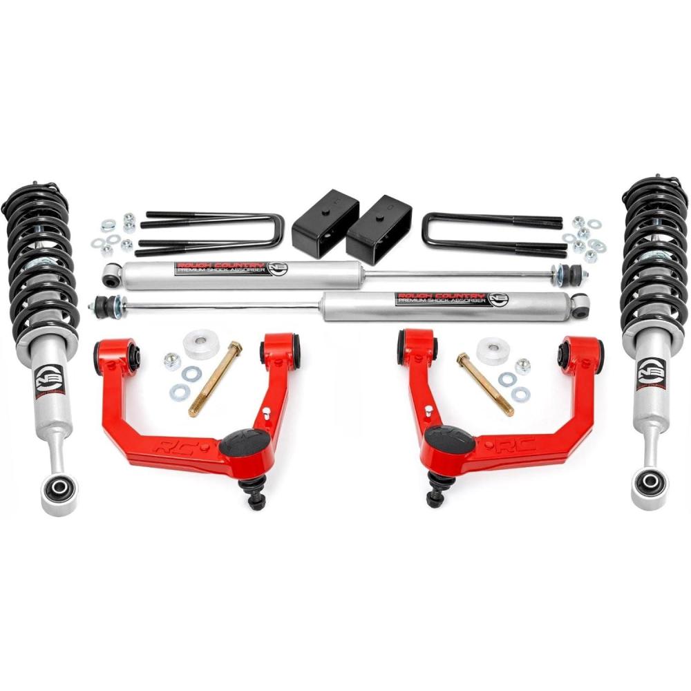 Rough Country's 3.5in Bolt-On Kit offers easy installation and aggressive good looks at an incredible value. Take your truck to new heights with this excellent option for 05-21 Toyota Tacoma. This kit features a set of high-quality, light weight forged aluminum Upper Control Arms designed to make alignment adjustments easier and Clevite rubber bushings for enhanced durability. These arms are designed to promote a factory-like geometry by keeping the ball joint at optimum angles after lifting. This design allows for an improved, greater range of motion from the ball-joint, with less stress, wear and tear. Rough Country’s 3.5-inch Bolt-On Kit features N3 Nitrogen-charged shocks, giving your truck incredible ride-quality both on and off-road. Also included are a set of loaded N3 struts and fabricated rear blocks to provide lift height from front to rear. Once installed, this kit gives your truck plenty of ride height for larger tires while offering a clean, level look from front to rear. This all-inclusive kit comes with everything you need, and installation is a piece of cake compared to other kits on the market! Featuring an easy installation process that requires minor cutting and drilling, this kit can be installed using common tools in a home garage, and allows the truck to be returned to stock at any time if so desired. Best of all this kit features Rough Country’s Lifetime Replacement Warranty.