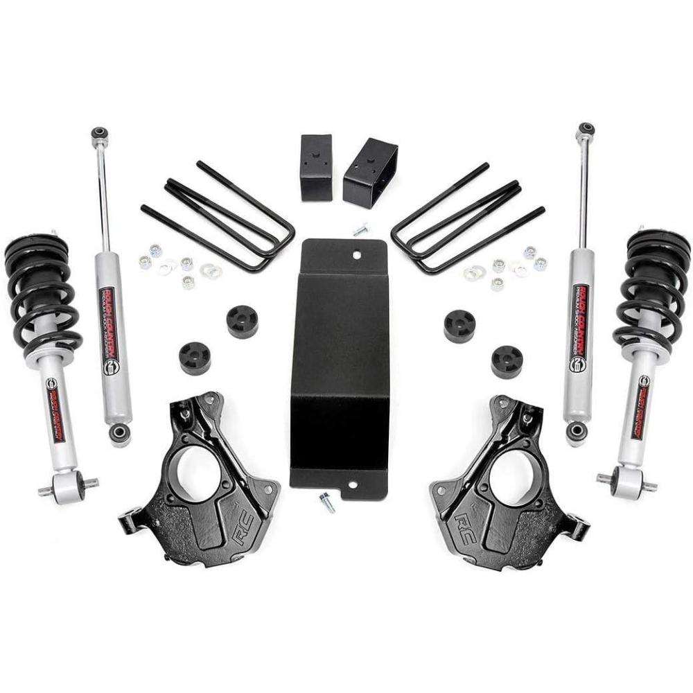 Peace of Mind Included: Rough Country backs this kit with a Limited Lifetime Replacement Guarantee, ensuring your suspension is ready for whatever comes next. Fitment Notes: Requires cutting and grinding. Does NOT work with aftermarket control arms. New lift block replaces the factory-equipped block. Does NOT fit 2007 “Classic” models. To ensure adequate clearance when lowering the differential models equipped with a mass damper on the front differential must be removed. To retain factory wheels a 0.25″ wheel spacer will be required (RC# 1065).