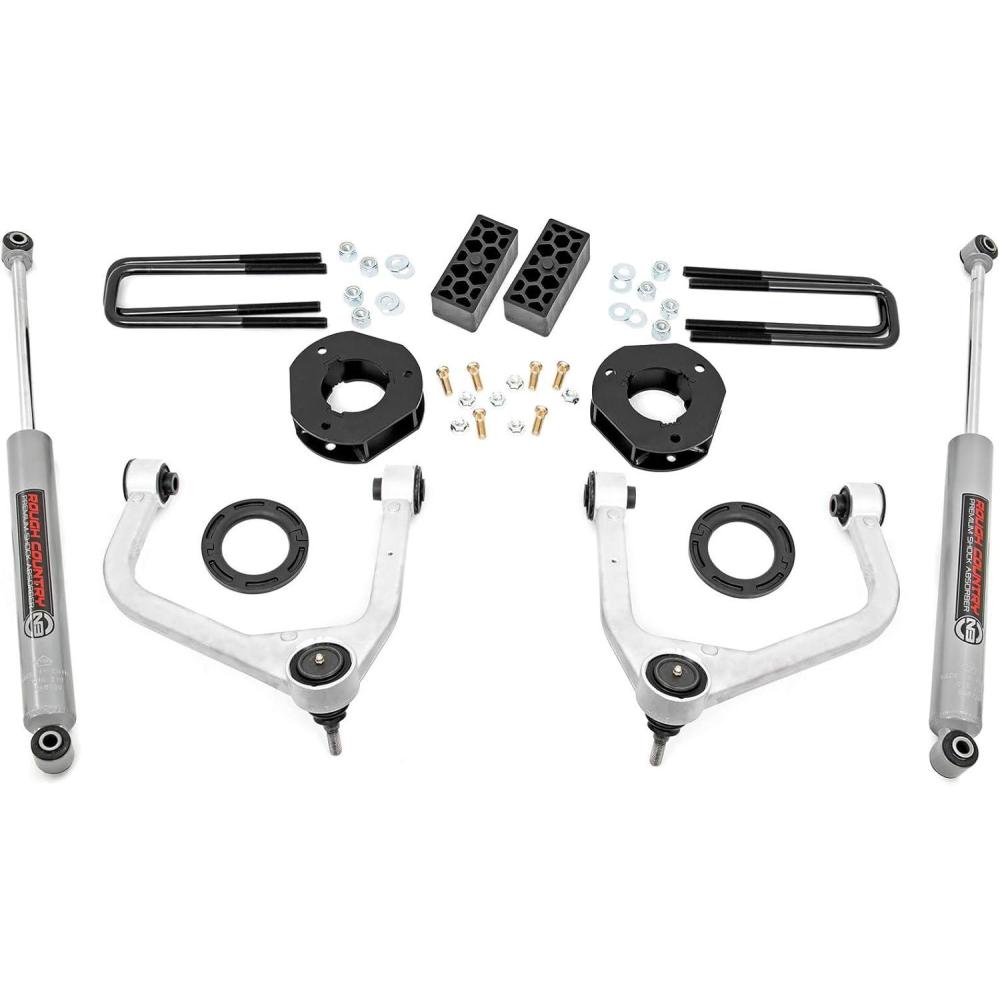 Innovative Design and Construction. When changing a vehicle's suspension, the key to preserving ride quality is keeping the geometry of all suspension components as close to their factory angles as possible. Rough Country's 3.5in lift features a set of forged aluminum upper control arms to provide the correct suspension geometry in our most durable control arm to date! This perfect-height lift is a great choice for anyone who wants more than a simple level but doesn’t quite want the full height of a 6-inch option. This kit lifts and levels the front of the vehicle with the rear, offering enough increased ground clearance to run up to 295/55R20 tires with an improved, aggressive look. We didn't want to limit you to one standard kit. Rough Country's 3.5-inch kit is configurable with all the shock options that we offer. This allows you to choose which shock series you want! Ranging from our nitrogen-charged N3 shocks to our Vertex reservoir shocks the power to choose is in your hands.