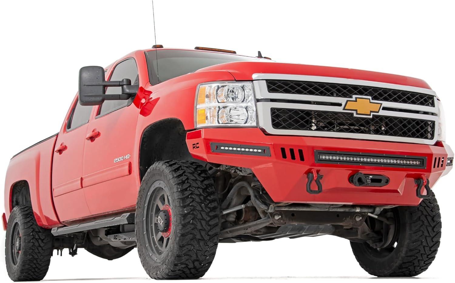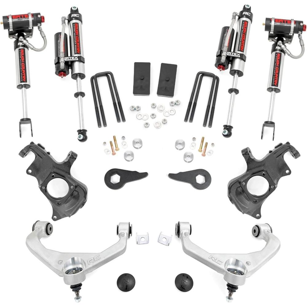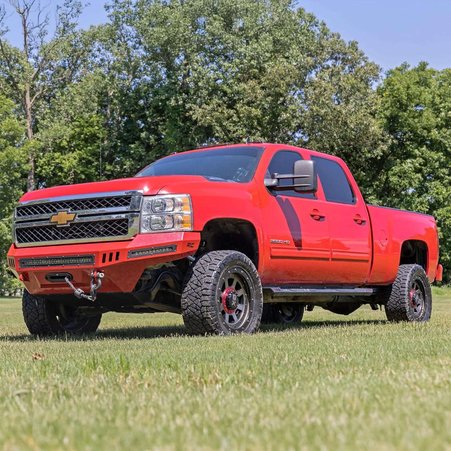 Rough Country 3.5″ Lift Kit w/N3 Shocks for Chevy Silverado & GMC Sierra 2500HD/3500HD (2011-2019 w/Factory Rear Overload Springs) – Silver Control Arms(Vertex Shocks – Red Arms)