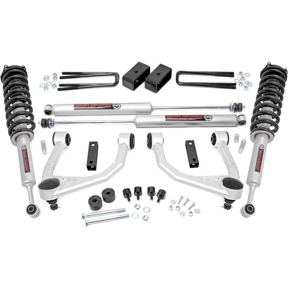 Rough Country's 3.5″ Bolt-On Kit offers easy installation and aggressive good looks at an incredible value. Take your truck to new heights with this excellent option for Tundra pickups. This kit features a set of high-quality, tubular Upper Control Arms designed to make alignment adjustments easier and Clevite rubber bushings for enhanced durability. These arms are designed to promote a factory-like geometry by keeping the ball joint at optimum angles after lifting. This design allows for an improved, greater range of motion from the ball-joint, with less stress, wear and tear. Rough Country's 3.5″ Bolt-On Kit features N3 Pre-Loaded Coil Spring Front Struts and N3 Rear Shocks, Nitrogen-charged, giving your truck incredible ride-quality both on and off-road. Fabricated rear blocks to provide lift height from front to rear. Once installed, this kit gives your truck plenty of ride height for larger tires while offering a clean, level look from front to rear. This all-inclusive kit comes with everything you need, and installation is a piece of cake compared to other kits on the market! Featuring a 100% bolt-on installation process that requires zero cutting or drilling, this kit can be installed using common tools in a home garage, and allows the truck to be returned to stock at any time if so desired. Backed by Rough Country's Lifetime Replacement Warranty | 3 Years on Struts/Shocks.