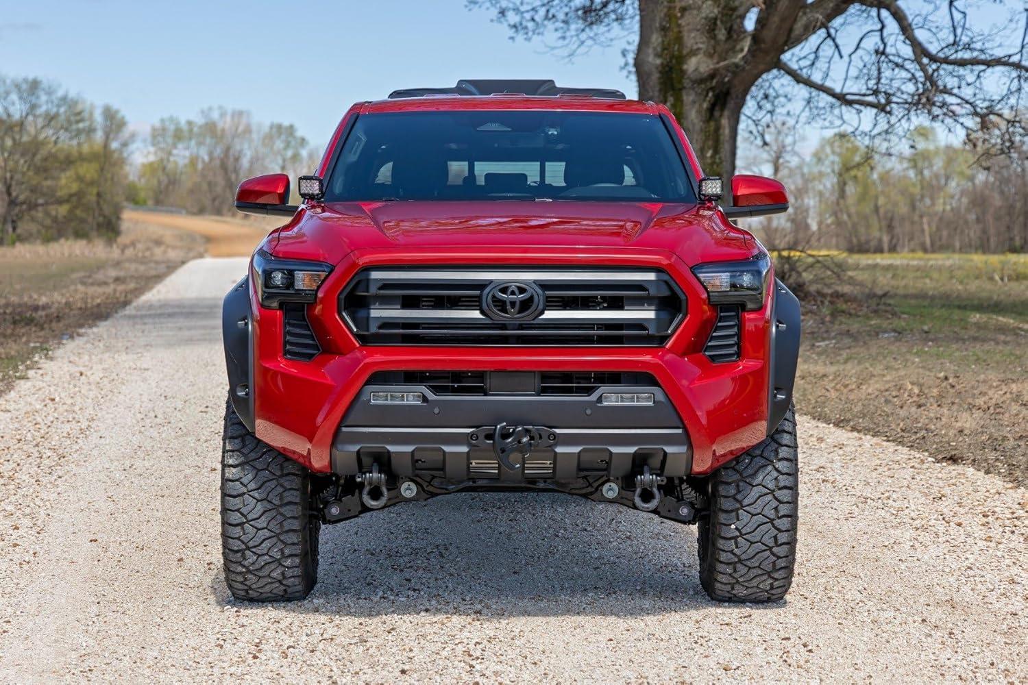 Trail-Ready 3.5” Lift & Leveled Stance: Boost your Tacoma’s ground clearance and eliminate factory rake with a bold, leveled look that’s ready for trails, terrain, and attention.