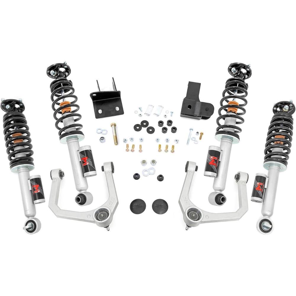 Innovative Design and Construction: This suspension kit combines the use of durable aluminum upper control arms and differential spacers to reduce cv angles and ball joint angles. Featuring a set of M1R Resi struts that offer uncompromised strength and rigidity gaining lift height is no issue. Completing the rear of this suspension kit included is a rear track bar and brake line relocation that allows you to retain factory-like geometry. This combined setup provides enough clearance to run 35″ tires with appropriate wheel backspacing.