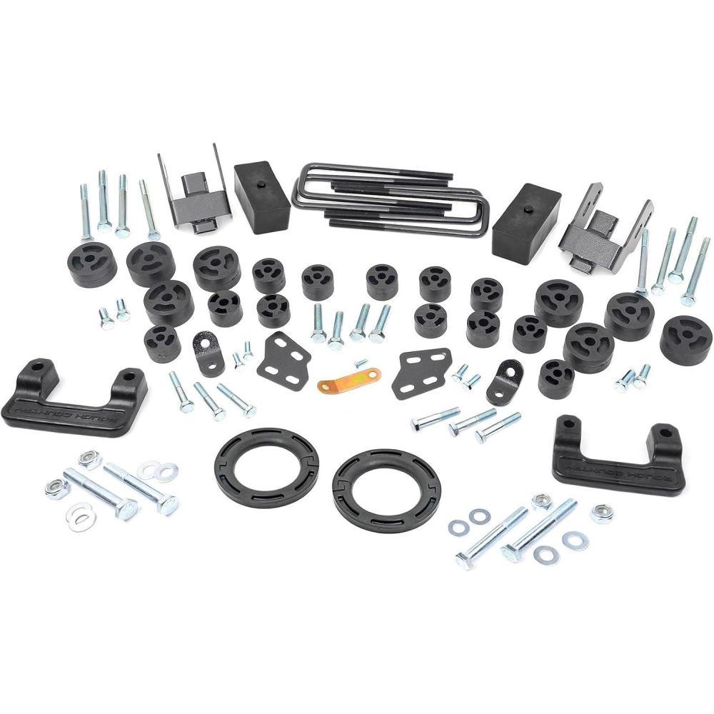 Get the ultimate lift combo with Rough Country's 3.75-inch Combo Kit for 2007-2013 GM 1500 trucks! This innovative system pairs a 2.5-inch suspension lift with a 1.25-inch body lift, delivering an aggressive stance, added clearance, and unbeatable value all in one package. Tackle tougher terrain and upgrade your tire game with enough ride height to run up to 285/75R17 tires, this kit includes lower strut extensions, rear lift blocks, and ultra-durable fiberglass-reinforced nylon body lift pucks for reliable, long-term performance.