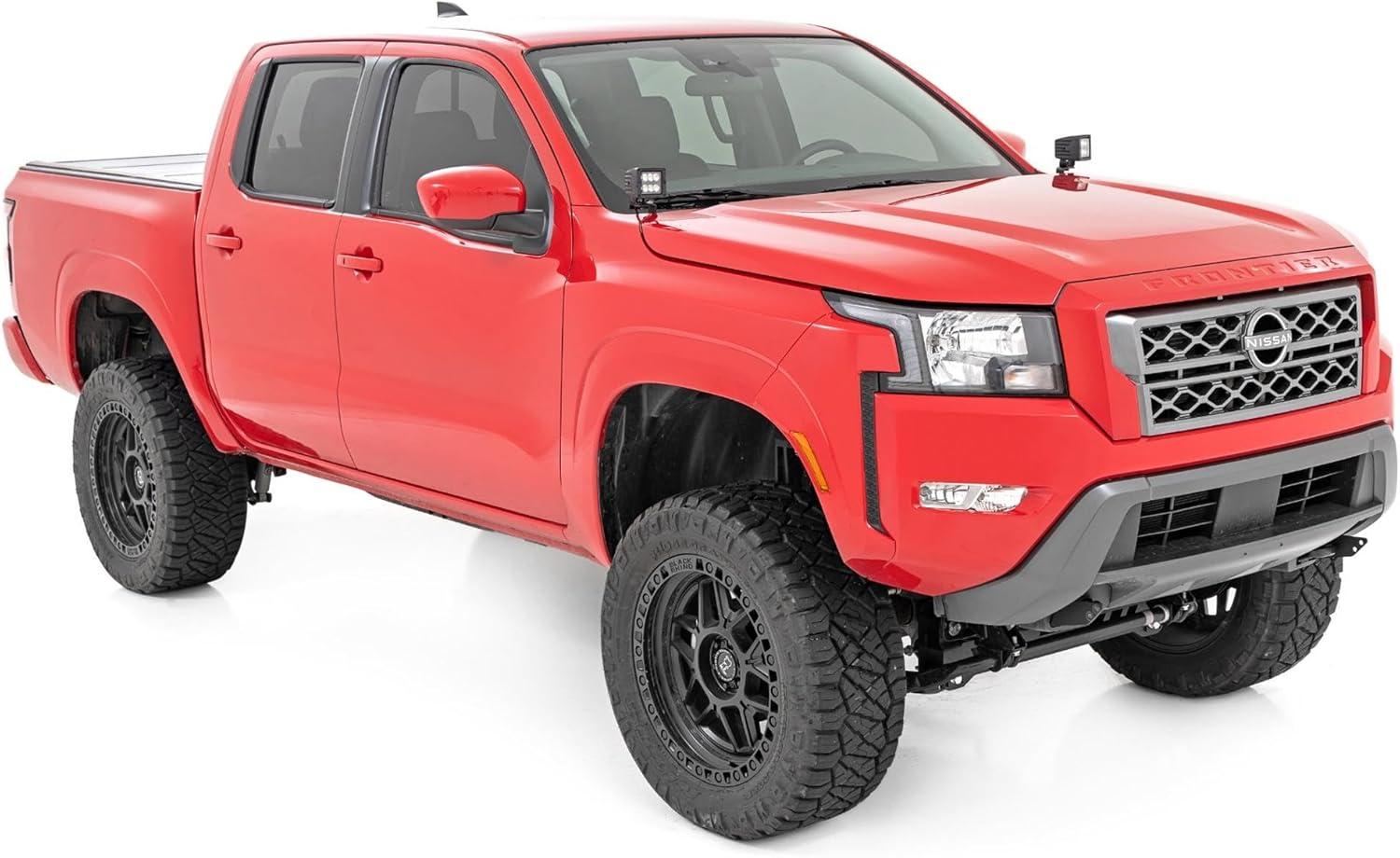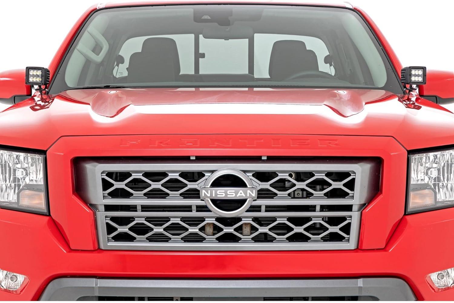 When you’re navigating the trails after hours, Rough Country’s Ditch Mount Kit for the long-awaited Ford Bronco gives you the strong side illumLight Up the Night. Rough Country's Ditch Mounts for your 2022 Nissan Frontier give you all the performance and durability that Rough Country is known for and provide plenty of light coverage for use on the trail or work site. These LED lights have a powerful punch of light, illuminating both sides of the trail for maximum safety. Heavy-Duty Build Quality. Rough Country's Ditch Mounts are compatible with RC Round or Square lights. The ditch mounts come in a choice of spot beams for longer distance illumination or floods for a wider light beam. The IP67 waterproof protection means your lights will stay safe from dust, mud, and rain. Made from 7-gauge steel and powder-coated black, our Ditch Mounts are strong, durable, and ready for whatever you can dish out. Installation and Warranty. Designed to be a straightforward bolt-on installation with no drilling, Rough Country's Ditch Mounts can be easily mounted without interfering with your Frontier's wipers or hood. You will need to trim a small section of the plastic cowl to install this kit. All necessary hardware and brackets are included, along with detailed instructions. As with all Rough Country products, the Ditch Mounts are covered by our Limited Lifetime Warranty.ination you need. Never miss another turn, and safely maneuver through any off-road situation in the dark without obstructing visibility from inside the cab. This easy-to-install mounting system is low profile and features a 100% bolt-on installation procedure, with no need for cutting or drilling needed. The LED Cubes tuck nicely along the base of the windshield and pack impressive lighting power. Each Rough Country LED light cube is IP67 Waterproof and includes a premium, braided wiring harness with an in-line fuse and on/off switch. This kit Includes Rough Country’s 3-year LED warranty.