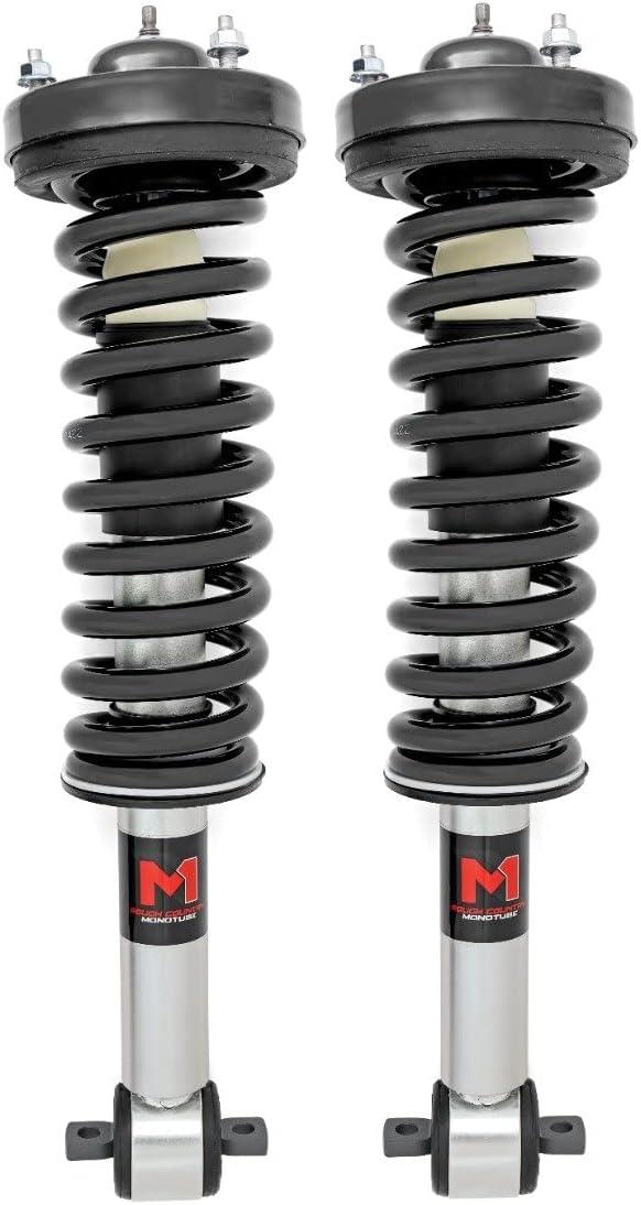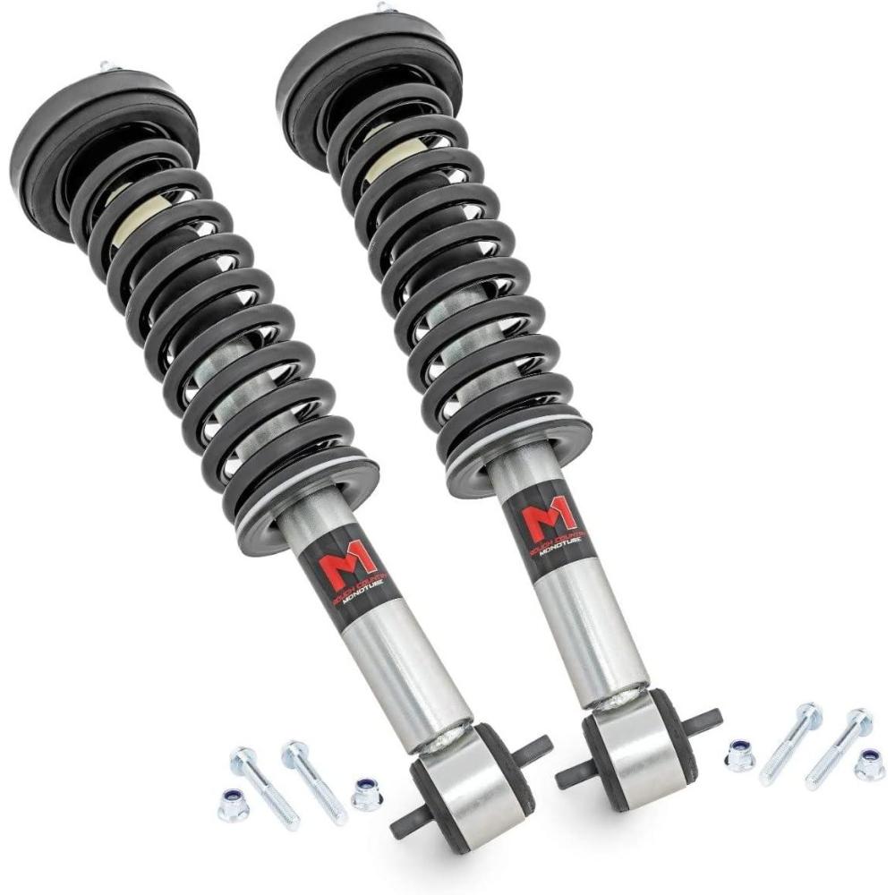 Improved Stance, Balance, and Handling. If you want to improve your vehicle's on-road performance and off-road capabilities, Rough Country's M1 Loaded Strut Kits are the way to go. Our M1 Loaded Struts help stabilize your vehicle's movements, enhancing control when you turn, brake, accelerate or ride over uneven road surfaces. As an adjustable ride height strut, these M1’s keep your suspension from overextending, providing a more consistent ride. Made for rugged off-road performance, our M1 monotube struts have a 46mm digressive piston for a more stable ride, preserving the smooth ride quality you need.