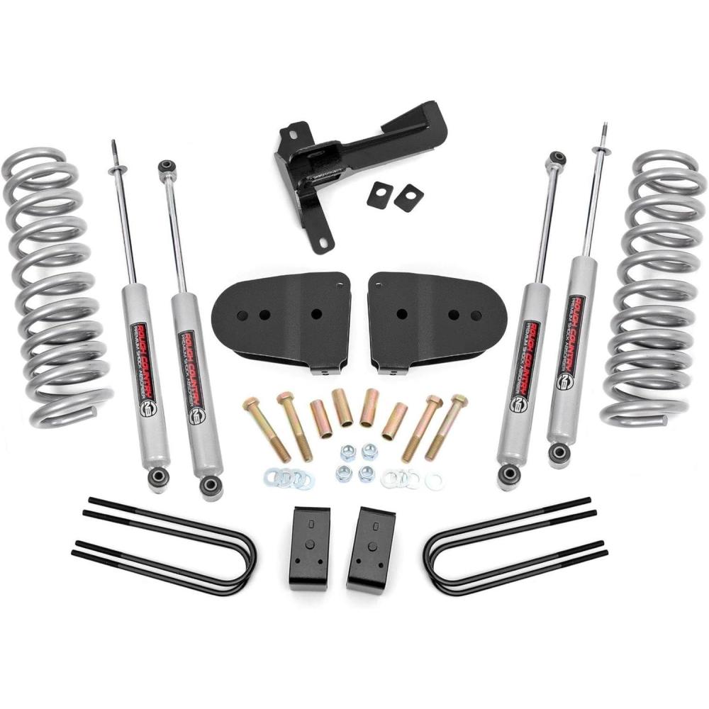 Give your 5th generation Ford Super Duty an impressive upgrade, front to back with Rough Country’s 3″ Suspension Lift Kit! This easy-to-install lift kit raises the front of your vehicle to be equal height with the rear for a leveled, better-than-stock look that gives an improved ride height and a more aggressive appearance. This kit features a set of front, lifted coil springs allowing you to gain additional ride height without sacrificing ride quality or performance. A set of radius arm drop brackets as well as a track bar drop bracket are provided to keep everything at optimum angles for a factory-like ride, even after lifting. A set of Rough Country's premium N3 shocks are also included. These fine-tuned 10-stage variable high-pressure Nitrogen charged shocks offer a fantastic blend of off-road action and smooth highway ride quality. With a durable 18mm spring-loaded piston rod and faster-cooling 54mm shock body. Get the wheels you want! Rough Country's 3″ Suspension Lift Kit comes with everything you need to fit up to a 35″ tire with proper wheel backspacing. Best of all, Rough Country's 3″ Suspension Lift Kit is backed by our Limited Lifetime Replacement Warranty.