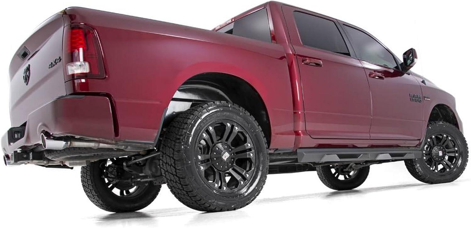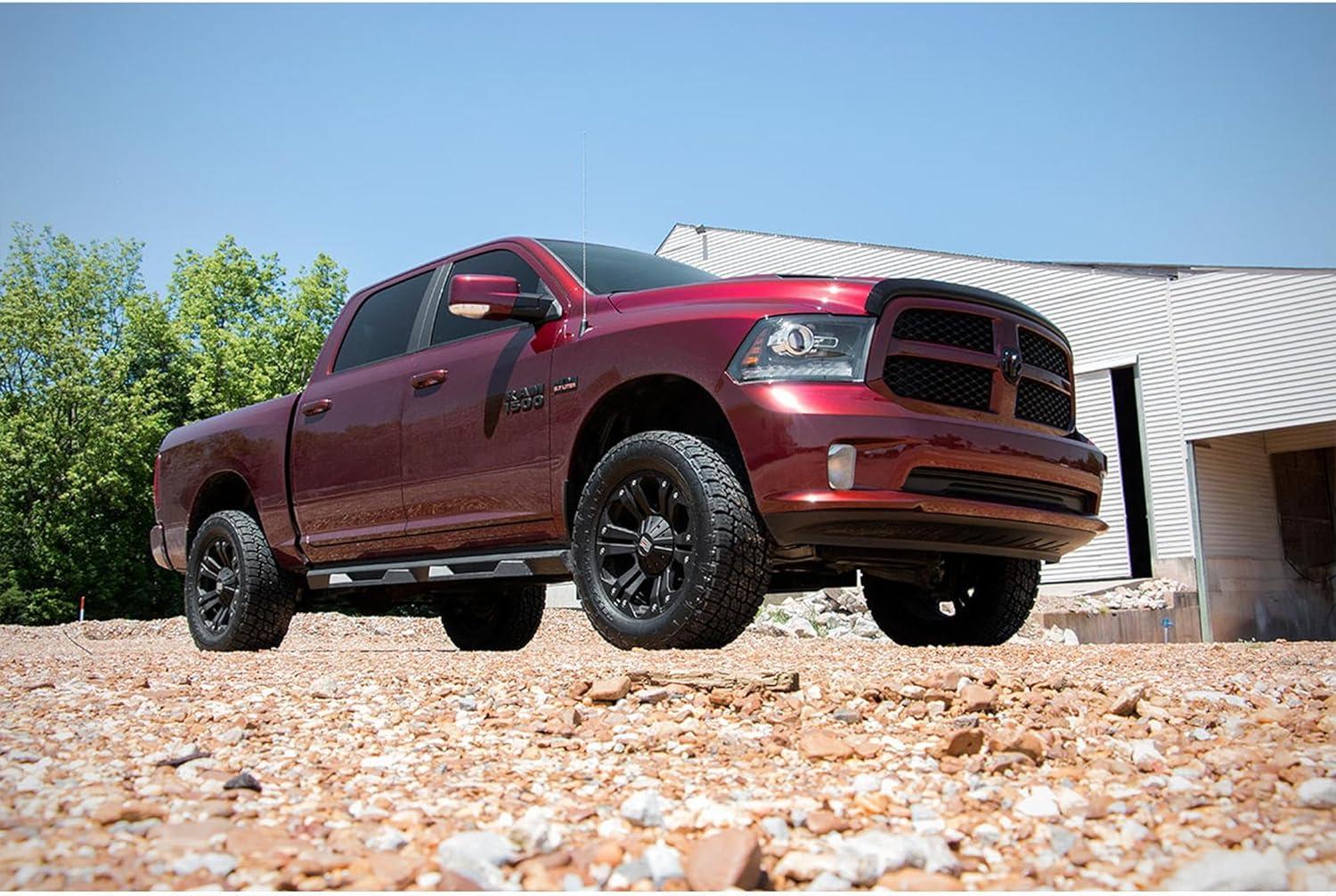 Rough Country's 3″ Bolt-On Kit offers easy installation and aggressive good looks at an incredible value. Take your truck to new heights with this excellent option for RAM 1500 pickups. This kit features a set of high-quality, tubular Upper Control Arms designed to make alignment adjustments easier and Clevite rubber bushings for enhanced durability. These arms are designed to promote a factory-like geometry by keeping the ball joint at optimum angles after lifting. This design allows for an improved, greater range of motion from the ball-joint, with less stress, wear and tear.