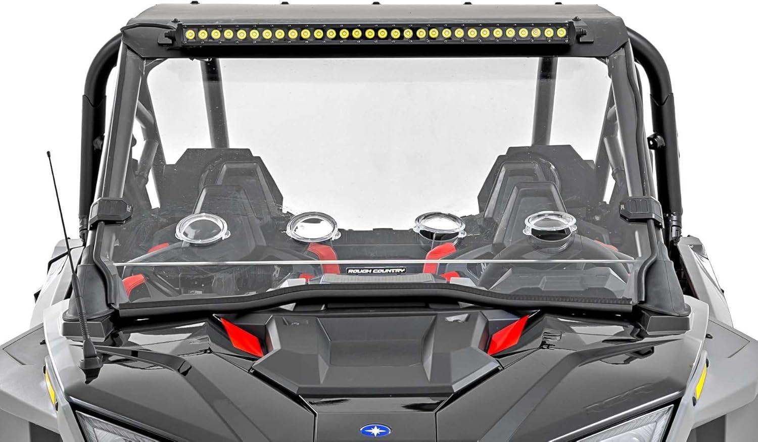 Rough Country 30″ LED Light Bar Upper Windshield Kit for Polaris RZR Turbo R – 12,000 Lumen Off-Road LED Lighting, Spot Beam, Waterproof, Bolt-On UTV LED Bar