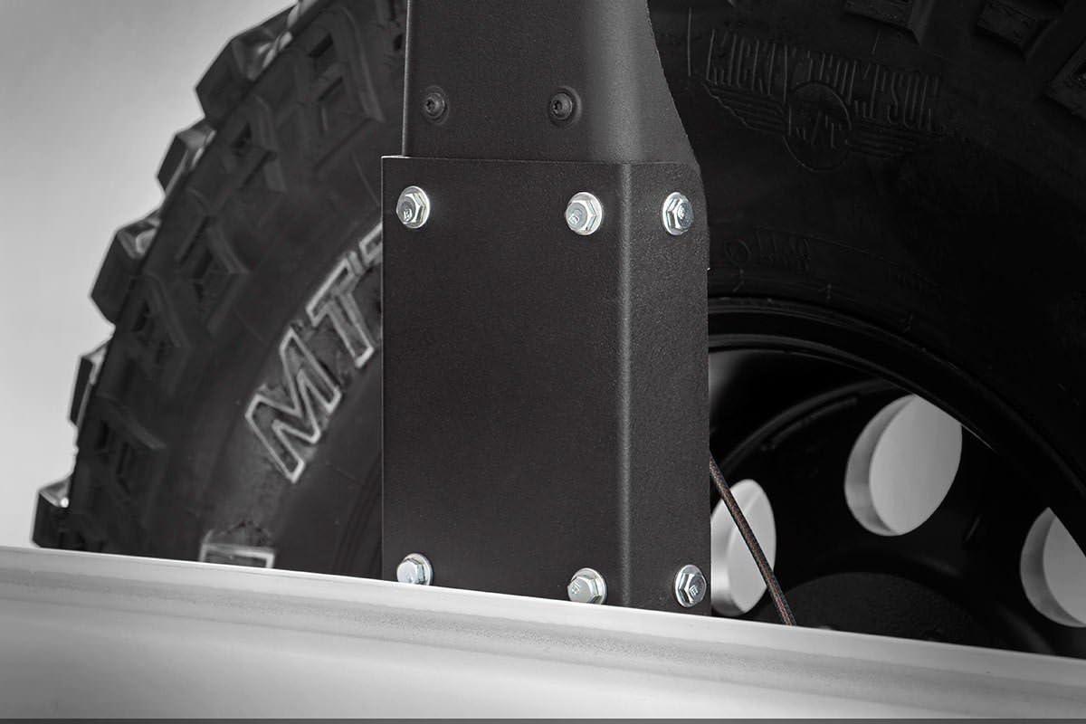 Rough Country's 3rd Brake Light Extension Bracket is the easiest solution to relocate your 3rd brake light above an aftermarket wheel and tire. This easy-to-install bracket keeps your 3rd brake light visible with up to 35-inch tires carried on the rear tire carrier. The JK's factory 3rd brake light is designed to be visible above your vehicle stock 5th wheel on the rear tire carrier. Many drivers choose to upgrade to larger wheels and tires, which can obstruct the 3rd brake light from being visible. Some states require that your 3rd brake light be visible at all times. This quick and easy upgrade adds additional height to the 3rd brake light allowing it to peek over aftermarket 5th wheels and tires for better visibility and safety. Includes Rough Country Lifetime Replacement