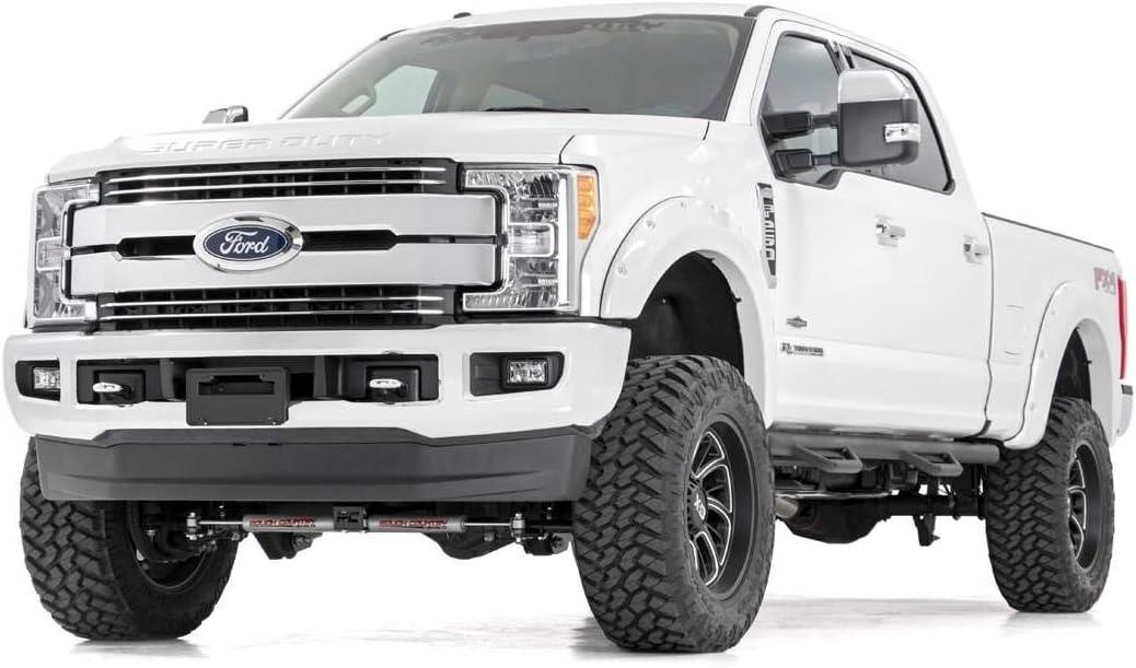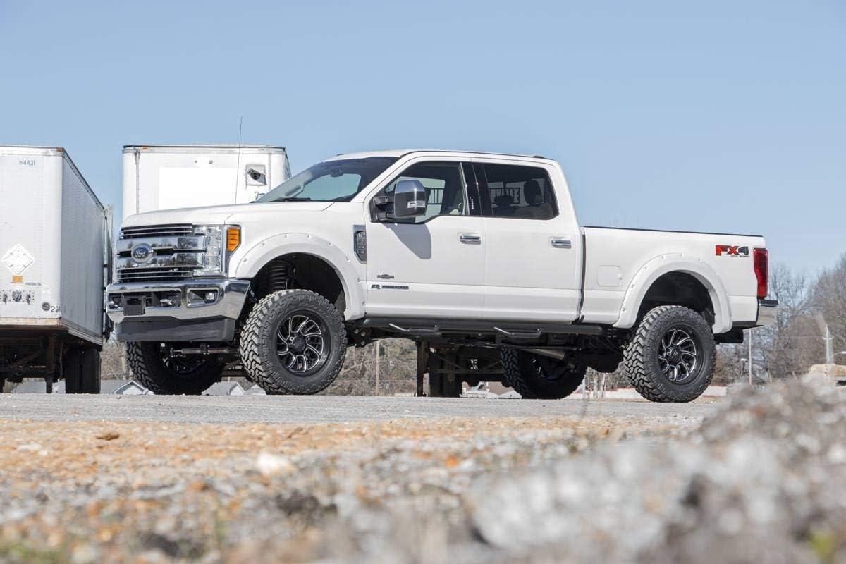 Give your 17-22 Ford Super Duty an impressive upgrade, front to back with Rough Country’s 4.5″ Ford Suspension Lift Kit! This easy-to-install lift kit raises the front of your vehicle to be equal height with the rear for a leveled, better-than-stock look that gives an improved ride height and more aggressive appearance.