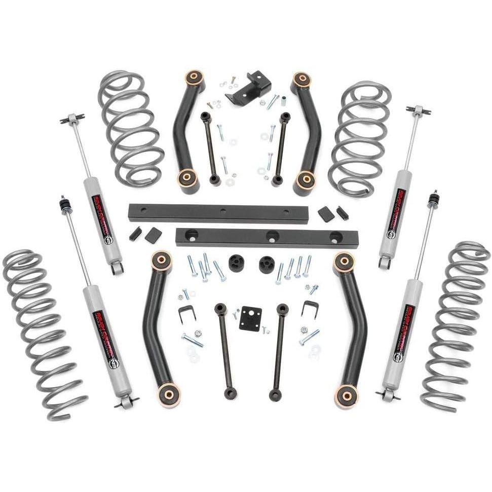 Who says your daily driver and your weekend warrior can't be the same vehicle? The 4″ N3-Series Kit for Jeep TJ was engineered by Rough Country's Research and Development Team to give the perfect blend of off-road performance and smooth highway ride. A set of application tuned, lifted coil springs are included in this kit along with a set of tubular lower control arms outfitted with rubber Clevite bushings for the best in vibration dampening. The 4″ N3-Series kit also includes a tubular transfer case drop kit, track bar bracket; and a full set of extended sway bar links. Improve your on and off-road ride quality with Rough Country's premium N3 shocks! These 10-stage variable valving, high-pressure Nitrogen charged shocks offer a fantastic blend of off-road action and smooth highway ride quality. With a durable 18mm spring-loaded piston rod and faster-cooling 54mm shock body, this shock offers up to 36kN Tensile Strength for a long lifespan of impressive vibration dampening. Features natural rubber bushings and an eye-catching metallic silver paint.
