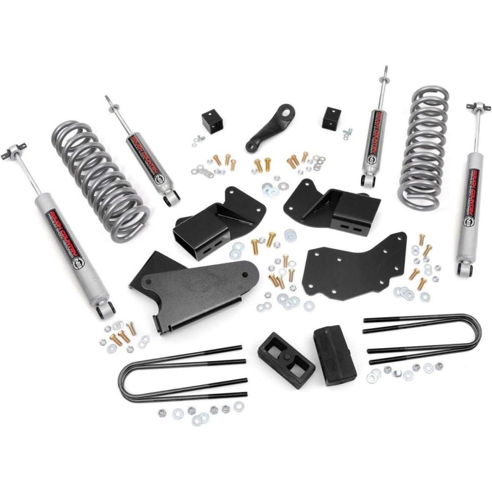 Give your 83-97 Ford Ranger an aggressive look from front to rear with Rough Country’s 4″ Ford Suspension Lift Kit! This easy-to-install leveling kit raises the front of your vehicle to be equal height with the rear for a leveled, flush look that gives a better ride height and more aggressive appearance. This kit features a set of front, durable coil springs allowing you gain additional ride height without sacrificing ride quality or performance. A set of radius arm and I-Beam drop brackets are provided to keep everything at optimum angles for a factory-like ride, even after lifting. Our fabricated rear blocks offer considerably more strength than their cast iron counterparts. A set of Rough Country's premium N3 shocks are also included in this kit. These fine tuned 10-stage variable high-pressure Nitrogen charged shocks offer a fantastic blend of off-road action and smooth highway ride quality. With a durable 18mm spring-loaded piston rod and faster-cooling 54mm shock body. Get the wheels you want! Rough Country's 4″ Ford Suspension Lift Kit comes with everything you need to fit up to a 31×10.5″ tire with proper wheel backspacing. Best of all, Rough Country's 4″ Ford Suspension Lift Kit is backed by our Lifetime Replacement Warranty.