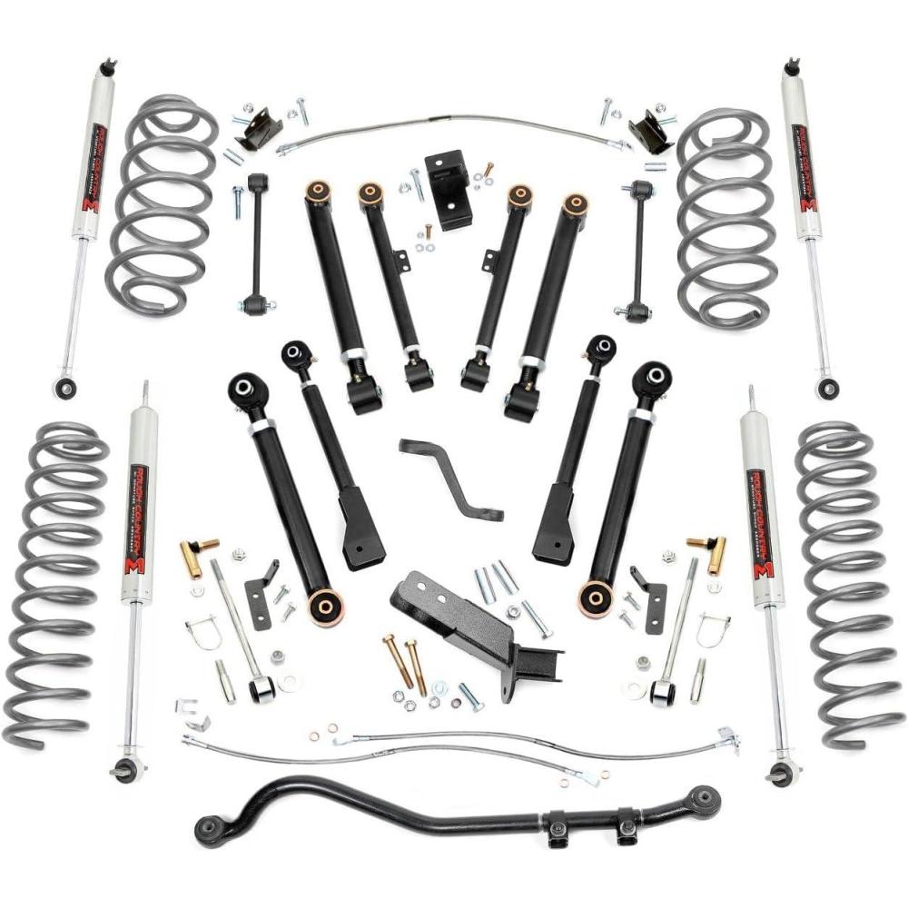 Venture far beyond the limits of a stock Wrangler with Rough Country's all-inclusive 4″ X-Series Lift for your TJ. Level the front of your vehicle with the rear while gaining enough increased ground clearance to run up to 33″ tires. Rough Country's X-Series line represents the best-in-class equipment for off-road action, including X-Flex Adjustable Control Arms, Clevite Rubber Bushings, Sway-bar quick disconnects, and our premium M1 shocks for optimum off-road performance. For those who are serious about flexing, crawling, and pushing your TJ to the limits, this kit features an upgraded Forged Adjustable Track Bar. Made of forged steel, this 16lb Track Bar boasts a beefy construction that will dwarf stock equipment. Easy to install and fully adjustable on the vehicle.