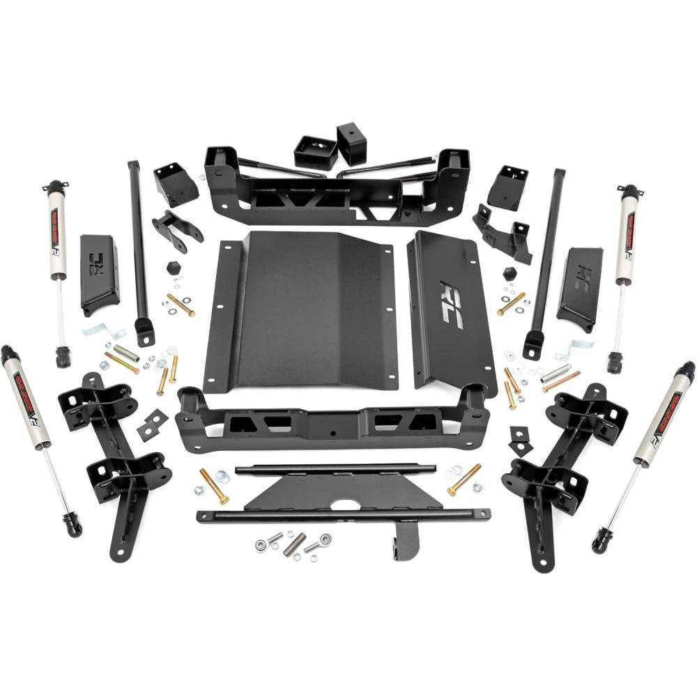 Newly redesigned for easier installation, Rough Country's 4-inch Suspension Lift Kit for '88 – '98 Chevy / GMC 1500, Tahoe, and Suburban models is an all-inclusive kit with everything you need to get rolling the right way at the right height. If you're looking for a kit that can take a beating look no further: a set of durable front and rear crossmembers, differential drop brackets, upper and lower control arm drops, massive steering link and heim joint assist link.