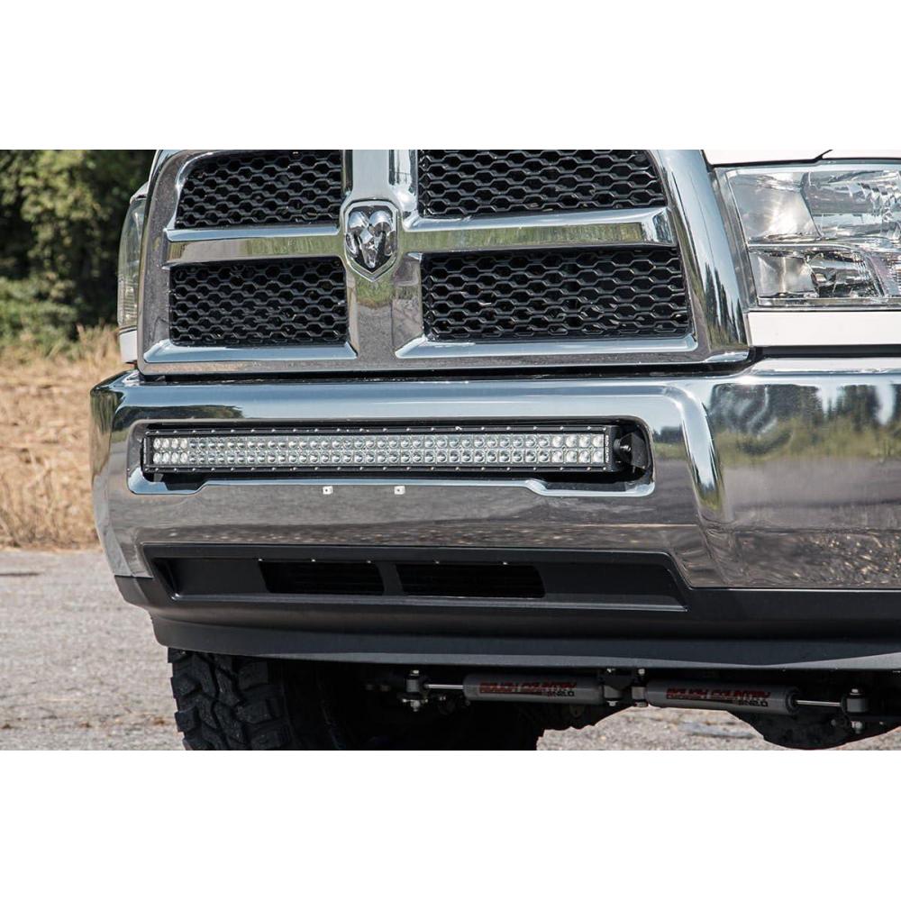 Upgrade your RAM's factory bumper with an extra large light bar worthy of an extra large truck! Rough Country's 40″ Curved LED Bumper Mount is the perfect mounting solution to add unyielding LED power to the front of your RAM 2500/3500. This easy-to-install mount attaches to the factory tow hook mounts with plenty of space to provide a perfect fit for Rough Country's dual-row curved 40″ LED Light Bar. The result is a clean, flush LED setup that looks like a factory upgrade! This kit can be easily installed in a home garage with common tools and is backed by Rough Country's Lifetime Replacement Guarantee!