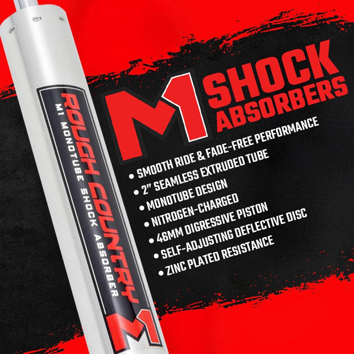 Whether you're tackling tough terrain or smooth city streets, Rough Country's Nitrogen-charged M1 Monotube Shock Absorber leads the way, delivering impeccable ride quality and performance mile after mile. Rough Country's Monotube M1 Shocks feature an internal floating piston design that keeps the shock oil and high-pressure nitrogen separate. The result is a lightning-fast reaction with no cavitation – just unbridled vibration damping at each and every obstacle.