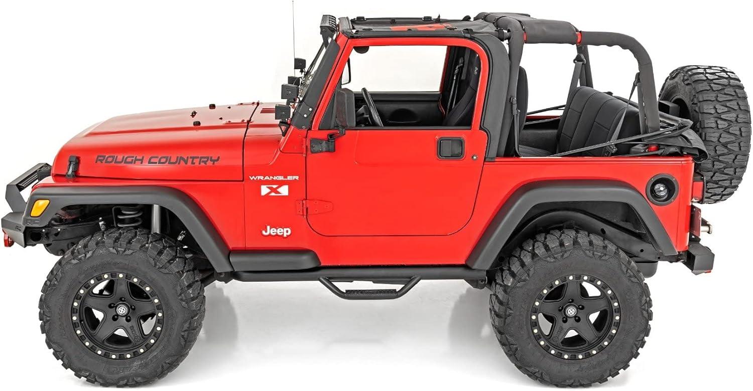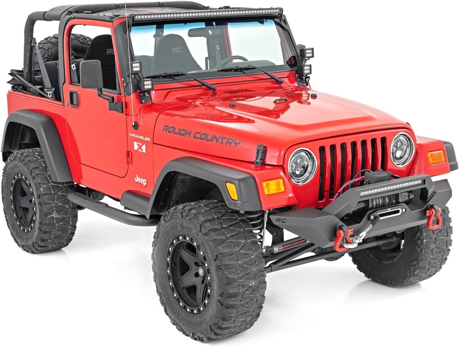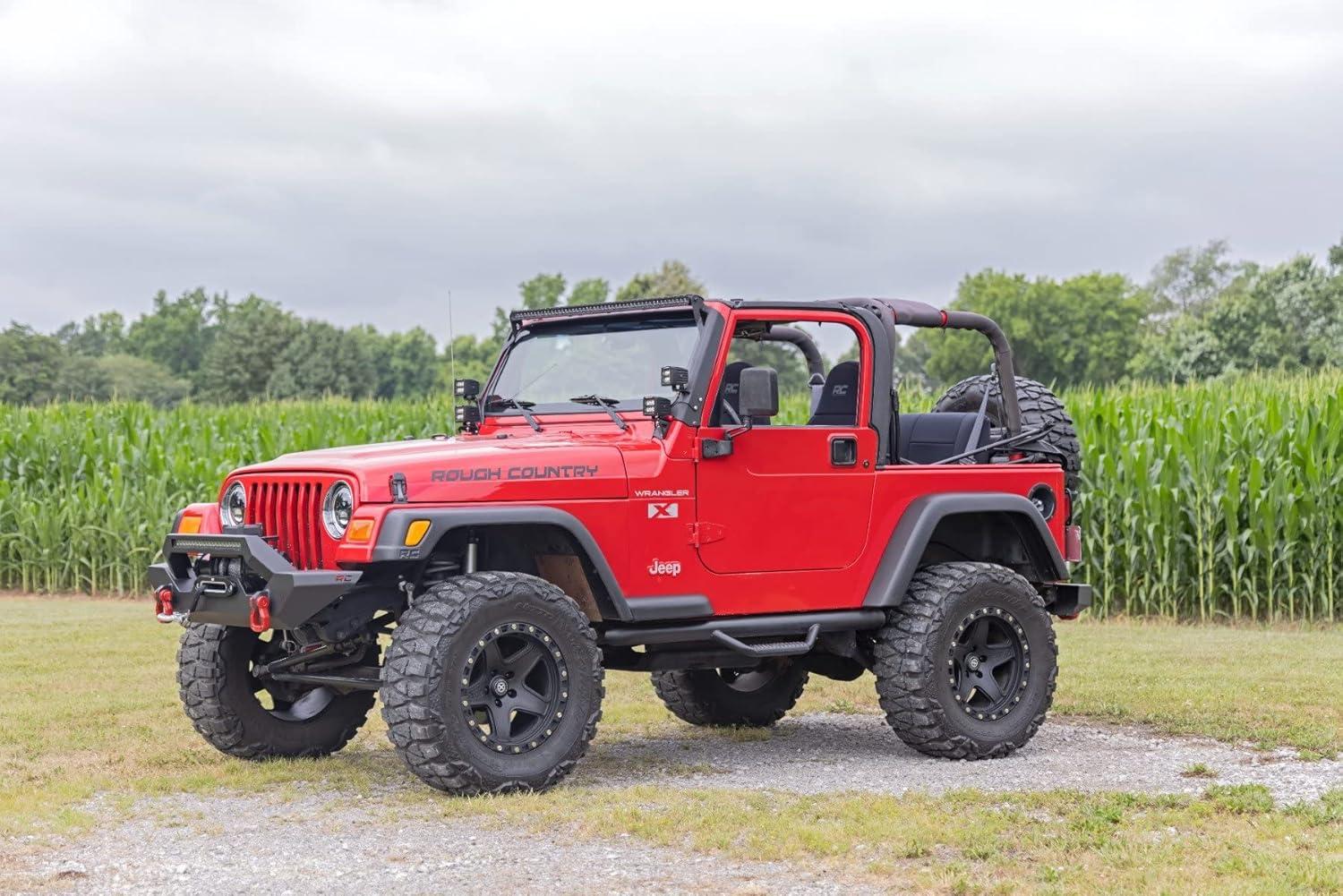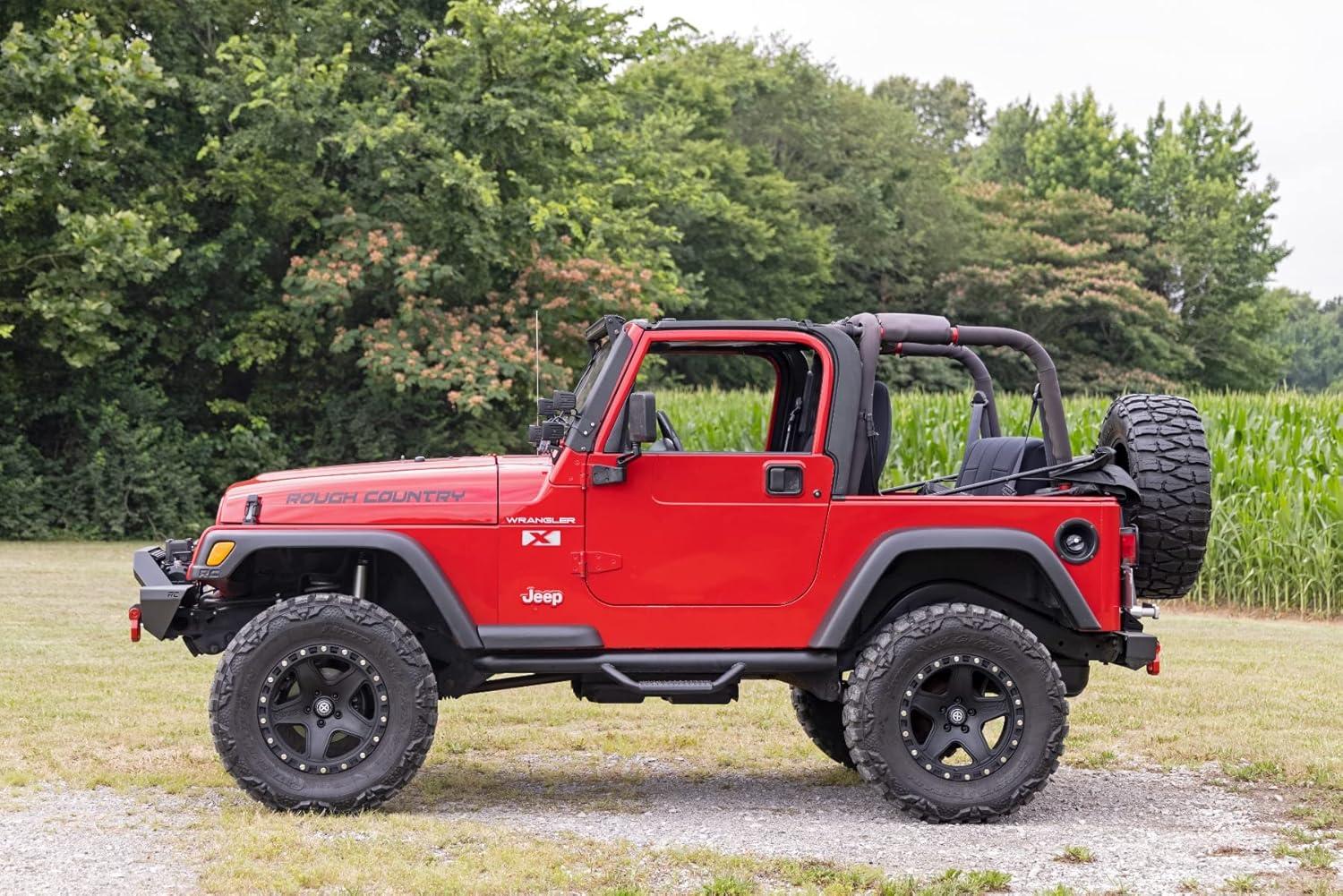 Innovative Design and Added Protection. Increase your Wrangler's protective features while adding impressive good looks with Rough Country's 5.5″ Wide Fender Flares. These aggressively good-looking flares transform your TJ's exterior boasting a wide coverage area ensuring to protect your Jeep's body from mud or road debris kicked up by the tires.