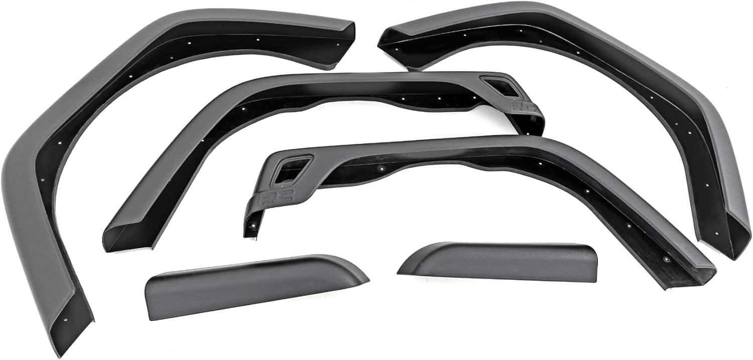 Lightweight and Durable. Designed to handle on or off-road terrain Rough Country's fender flares are constructed of a Rigid UV Stable Black TPO plastic. This material is lightweight and can endure the elements. The UV treatment process eliminates chalking and helps prevent sun fading. Each flare set features a stock look and feel and retains the factory front marker lights.