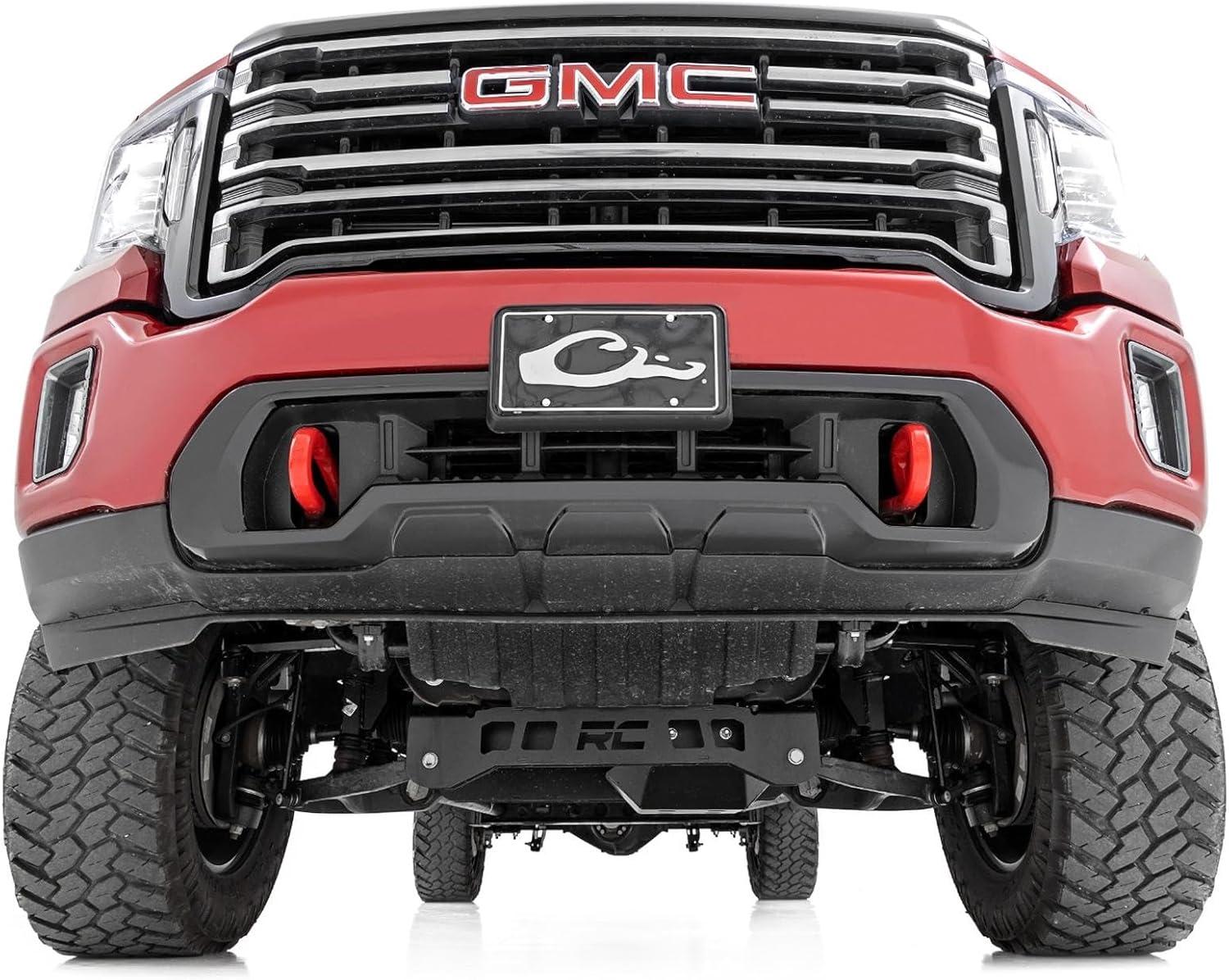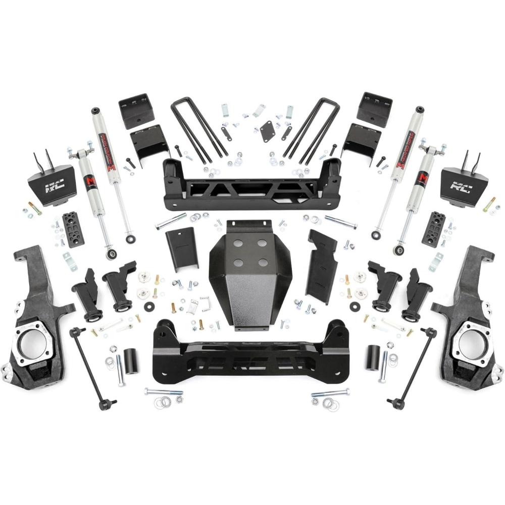 Ultimate Upgrade. Give your GM 2500 an unbeatable stance and better ride quality with Rough Country's 5-inch Lift Kit with Torsion Drop. This kit is a unique offering of suspension lifts, delivering the desired torsion drop look and ride you want while still offering unmatched ground clearance. The Torsion Drop brackets are designed to ensure that your vehicle's track width is not widened and allows you to maintain the factory feel of handling corners and turns. So take your everyday ride and make it one of a kind with our 5-inch Lift Kit with Torsion Drop! Premium Construction. This 5-Inch rugged lift kit is made of heavy-duty laser-cut steel components, powder-coated for a long-lasting finish. It includes replacement knuckles, 1/4″ thick steel cross members for the front and rear, and 1/4″ thick Torsion Drop Bar Brackets. You also get valved M1 Monotube shock absorbers and rear Fabricated Steel Blocks that are stronger and offer a longer lifespan than cast blocks. This setup will give you a level stance and the ride height you need to run those larger tires with ease. Installation and Warranty. This kit is packed with all hardware needed for installation and includes full sway bar links, a durable, thick Skid Plate, and brake line relocation brackets. Although some minor cutting and drilling are required, there is no drilling or modifying of the differential, and no drivetrain or exhaust modifications are required. Rough Country's products are backed with a limited lifetime replacement warranty. This means that you have the security of knowing that Rough Country's products will work as they should, even after years of use.