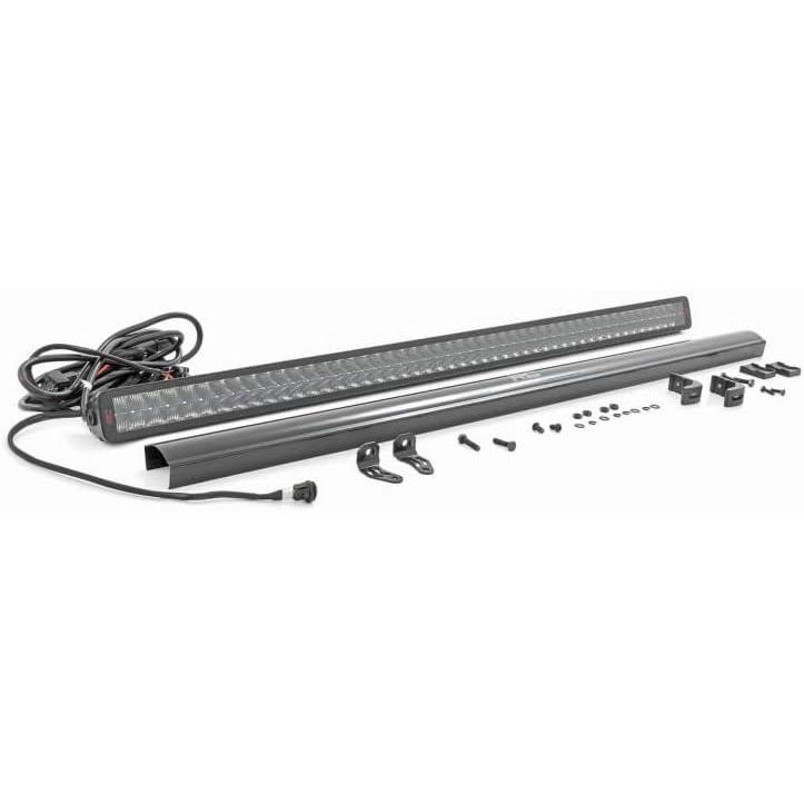 Installation and Warranty. Rough Country's Spectrum 50-inch Dual Row Light Bar is designed for easy installation, allowing you to get back on the road in no time. It comes with snap-on covers, base mounts, end mounts with hardware, wiring harness, and an on/off switch so you can have it on your rig in no time. Plus, it includes a three-year warranty, so we've got your back when you hit those rough roads out there!