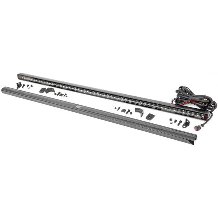 Installation and Warranty. Rough Country's Spectrum 50-inch Single Row Light Bar is designed for easy installation, allowing you to get back on the road in no time. It comes with snap-on covers, base mounts, end mounts with hardware, wiring harness, and an on/off switch so you can have it on your rig in no time. Plus, it includes a three-year warranty, so we've got your back when you hit those rough roads out there!
