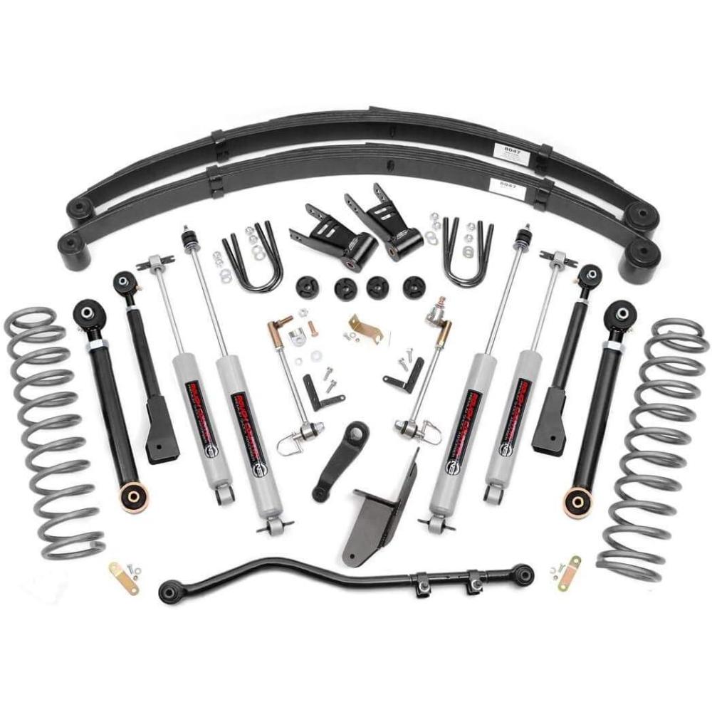 Aggressive Appearance & Increased Ground Clearance: This kit gives your XJ a bold, commanding stance while providing the clearance needed to tackle challenging trails. Lifted coil springs and all-new rear lifted leaf springs allow room for 33in tires and up to 35in with minor fender trimming.