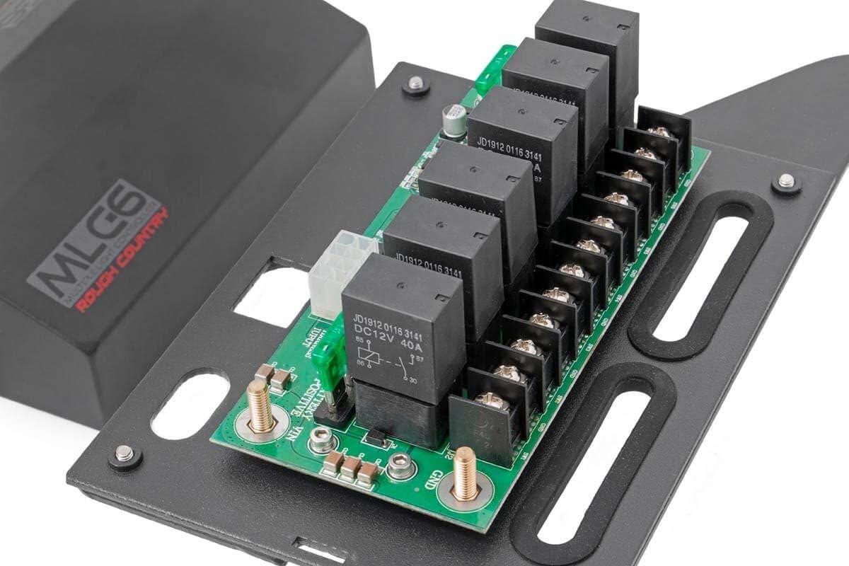 Built for Trail-Ready Power: Features a rugged 12-position terminal block, six 40A plug-in cube relays, six 30A ATO automotive fuses, and six protective diodes to prevent LED field collapse.