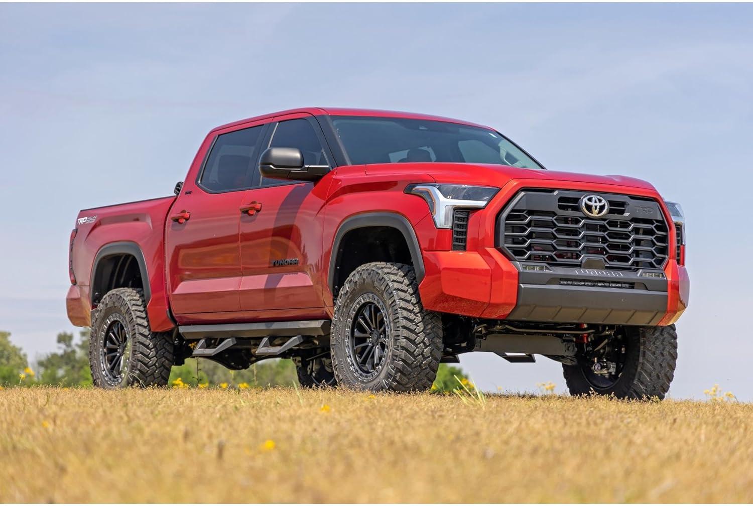 Superior Lift Solution. Looking to add some serious attitude to your third-generation Toyota Tundra? Rough Country's 6-Inch Lift Kit is just what you need. This lift kit gives your Tundra a meaner, lifted, and level stance while providing a smooth ride for unmatched highway and trail performance. It also adds room for larger wheels and tires, so you can make your truck stand out from the crowd. With excellent ride quality and handling characteristics on the road, this lift kit is the perfect way to take your Tundra to the next level. High-Quality Construction. Rough Country's 6-Inch Lift Kit for the 2022 Toyota Tundra makes it easy to gain that much-needed ground clearance and run up to a 37″ tire for that aggressive look you want! Designed to maintain factory track width and alignment specs, this kit boasts premium components, giving you a higher-quality lift on your Tundra. The high-quality components and a high-clearance design provide the strength, stability, and up-travel you need to conquer almost any terrain. Installation and Warranty. Our 6-Inch Lift Kit includes all the hardware you need for installation, including front struts, rear coil springs, and bump stops. Our heavy-duty parts provide the strength, stability, and up-travel you need to conquer almost any terrain. When you purchase a Rough Country product, you get more than a great product at an affordable price. You also get peace of mind knowing that your purchase comes with a limited lifetime replacement warranty for manufacturer defects. With Rough Country's industry-leading warranty, you can be sure that your Rough Country lift kit is protected from structural and workmanship damage after the date of purchase.