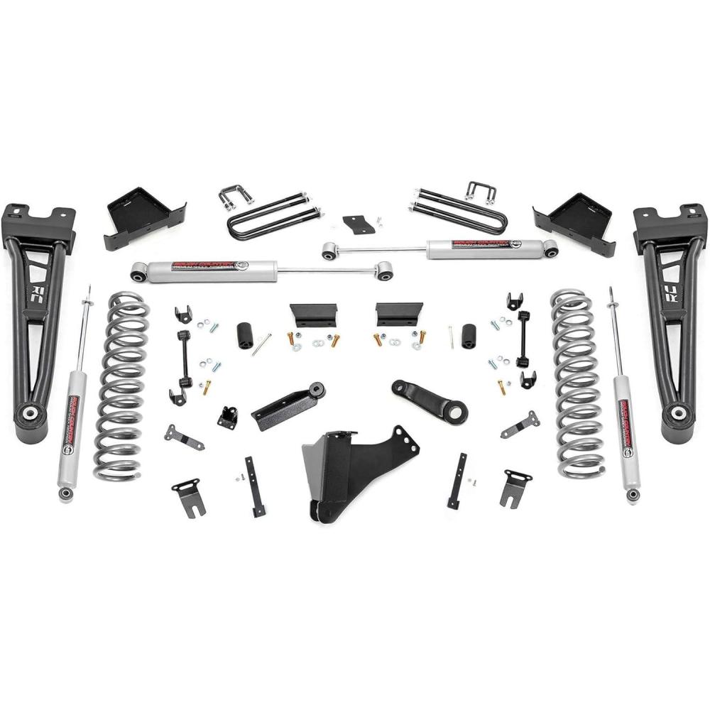 Superior Ride Quality. Take your fifth-generation Ford Super Duty to new heights with Rough Country's 6-inch Radius Arm Drop Suspension Lift! This all-inclusive kit comes with everything you need for a total transformation of your truck. Run up to 37in tires while preserving the smooth, factory ride quality with this impressive upgrade.
