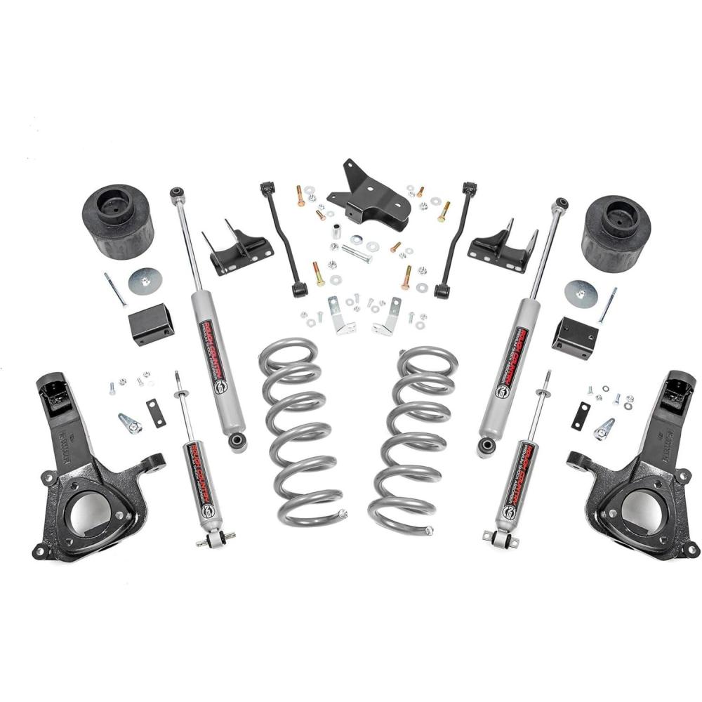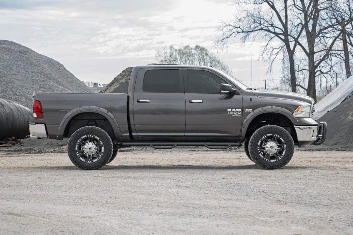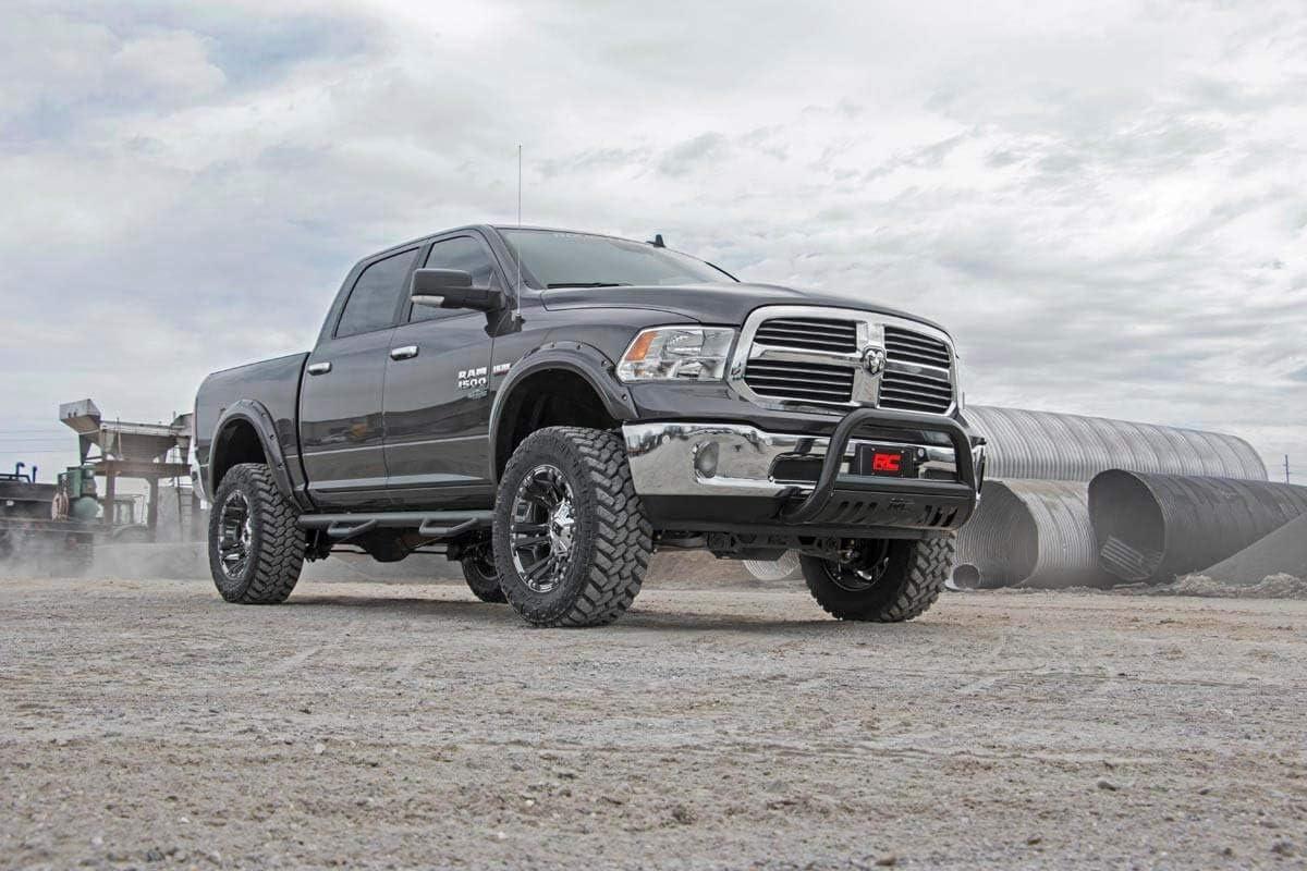 Gain increased ground clearance and incredible good looks for your V8 2wd RAM 1500 with Rough Country's 6″ Suspension Lift. This all-inclusive lift comes with everything you need to overhaul your 2WD RAM's appearance while maintaining a factory-like ride quality. Each kit features a set of lifted knuckles and coil spring spacers and lifted coil springs offering enough ground clearance to run up to a 37×12.50 tire on a 20″ wheel while giving your truck a better stance and more aggressive appearance. This kit also includes a set of new control arm brackets to help keep your driveshaft at the optimum angle. This kit also features Rough Country's Premium N3 Shocks! These 10-stage variable valving, high-pressure Nitrogen charged shocks offer a fantastic blend of off-road action and smooth highway ride quality. With a durable 18mm spring-loaded piston rod and faster-cooling 54mm shock body, this shock offers up to 36kN Tensile Strength for a long lifespan of impressive vibration dampening. Includes Rough Country's Lifetime Replacement Guarantee!
