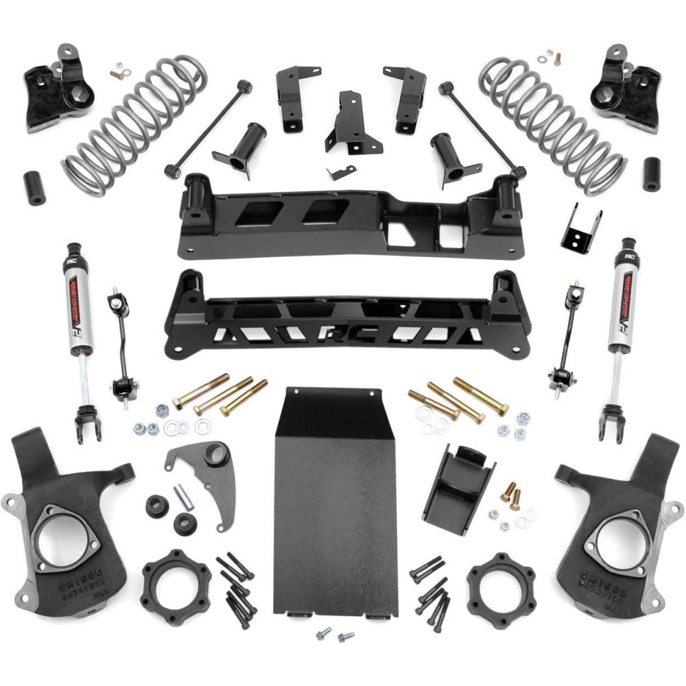 We've raised the bar for our popular 6″ Tahoe, Yukon, Suburban Lift! We've phased out our torsion drop kit to offer the more popular and better performing Non Torsion Drop option. This NTD kit is easier to install, handles better than ever, and looks killer from any angle since you won't have that unsightly torsion bar peeking out from the underside of the vehicle. Gain greater clearance, better handling, and the cleanest looking 6″ lift available! A set of lifted front knuckles and rear coil springs allow your SUV to run up to 35″ tires, while a full set of high-clearance crossmembers, differential drop brackets and torsion bar drop brackets keep everything tucked, hidden, and at optimum angles. But the best gets even better: Now included in this kit are a set of front V2 Shocks – custom valved to the specifics of your model vehicle, and designed for balanced performance both on and off-road. Front CV spacers, sway-bar links, and a protective skid plate are also included to give you everything you need to get rolling in one of our best kits, at our best price.