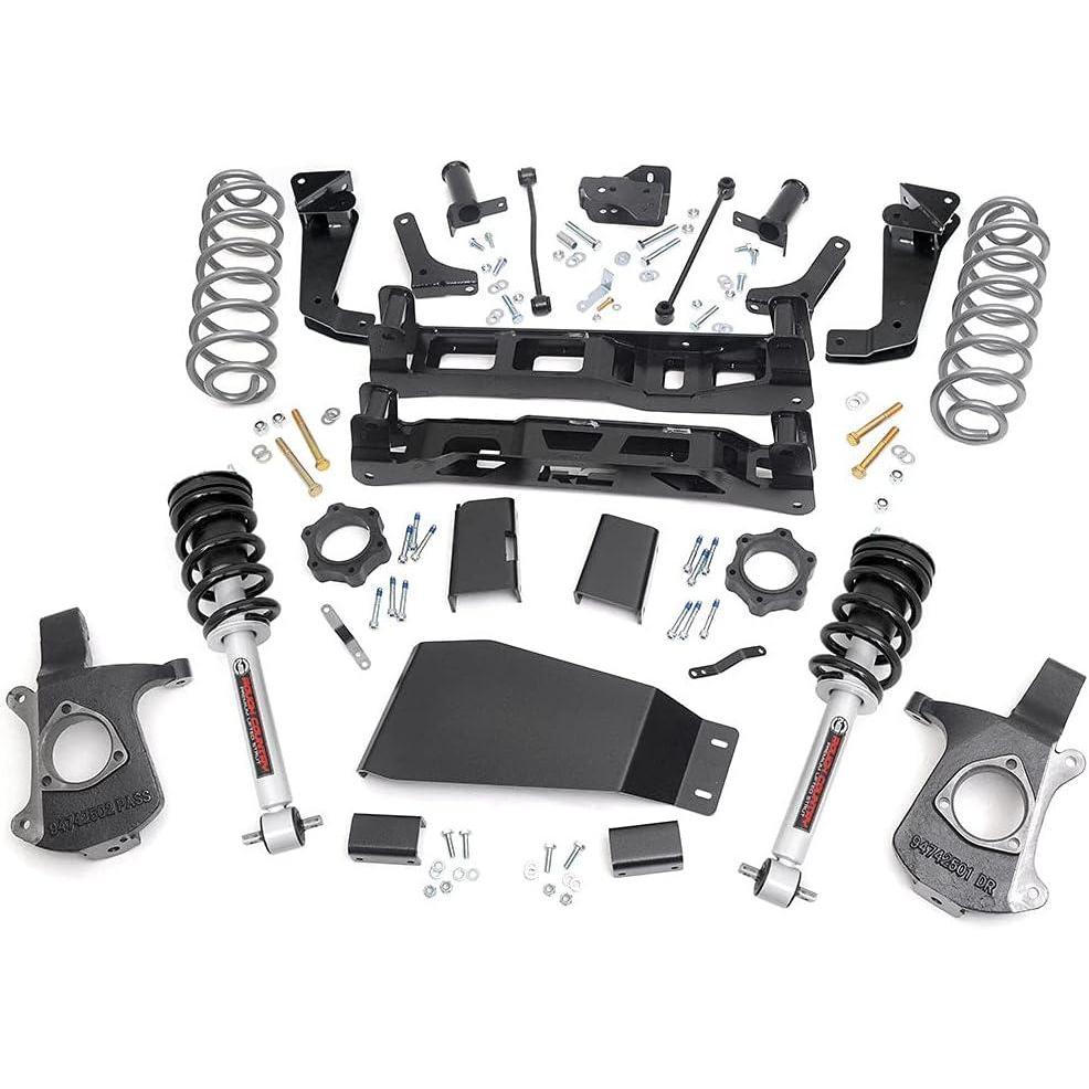 This all-inclusive kit ships with everything you need to get going and hit the mudholes. Featuring a set of beefy lifted knuckles and 1/4″ thick steel front and rear high-clearance crossmembers, this kit offers plenty of muscle to handle hazards both on and off-road. A set of Lifted Coil Springs and N3 Lifted Loaded Coil Spring Struts provide plenty of ride height – enough to run up to a 33″ tire on our 5″ option, or a 35″ tire on our 7.5″ option. Both kits feature sway-bar links, shock extensions, brake line brackets, a rough and tumble lower skid plate, and Grade 8 Hardware. Included sway-bar drop brackets and differential drop brackets help keep vehicle components properly aligned after lifting, providing a factory-like ride while boasting an aggressive stance. Backed by Rough Country | Lift/Lifetime | Struts/3 Years