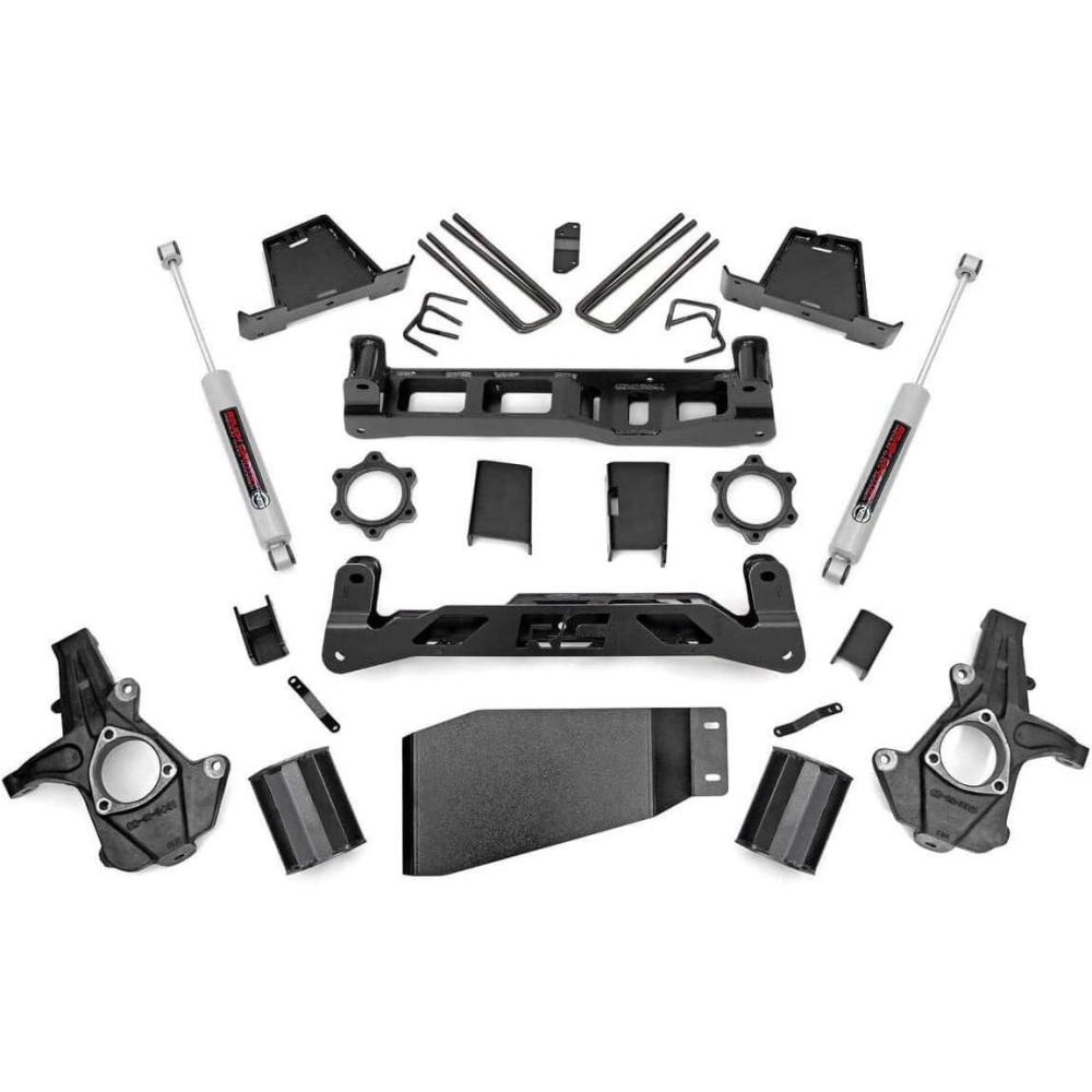 Engineered for Ground-Clearing Performance: Our signature high-clearance crossmembers feature a low-profile design with the iconic “RC” logo, giving you maximum ground clearance and trail-readiness. A heavy-duty lower skid plate and precision-engineered sway-bar and differential drop brackets further enhance durability and protection. Designed with convenience in mind, this kit requires zero drivetrain, exhaust, or differential modifications. Even better, there's no need to disassemble your struts making installation faster and smoother than traditional lift systems. All components are precision laser-cut using advanced CAD technology, ensuring an exact fit and rock-solid durability. The included rear 6.5-inch heavy-duty fabricated lift blocks are stronger and more reliable than standard cast options and feature anti-wrap technology to preserve your factory ride quality. This kit is fully compatible with your choice of Rough Country shock and strut options from our value-packed, nitrogen-charged N3s to the high-performance Vertex reservoir series. Get the ride feel and performance that matches your driving style. Note: Requires minor cutting and drilling. Does NOT fit 2007 “Classic” models. Due to vibration issues after lifting, AWD models require a new aftermarket driveshaft. 18″ or larger wheels are required to ensure proper clearance of the supplied knuckles.